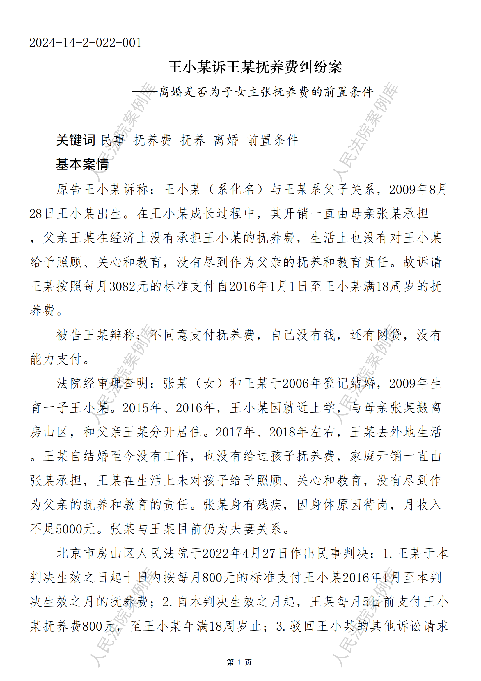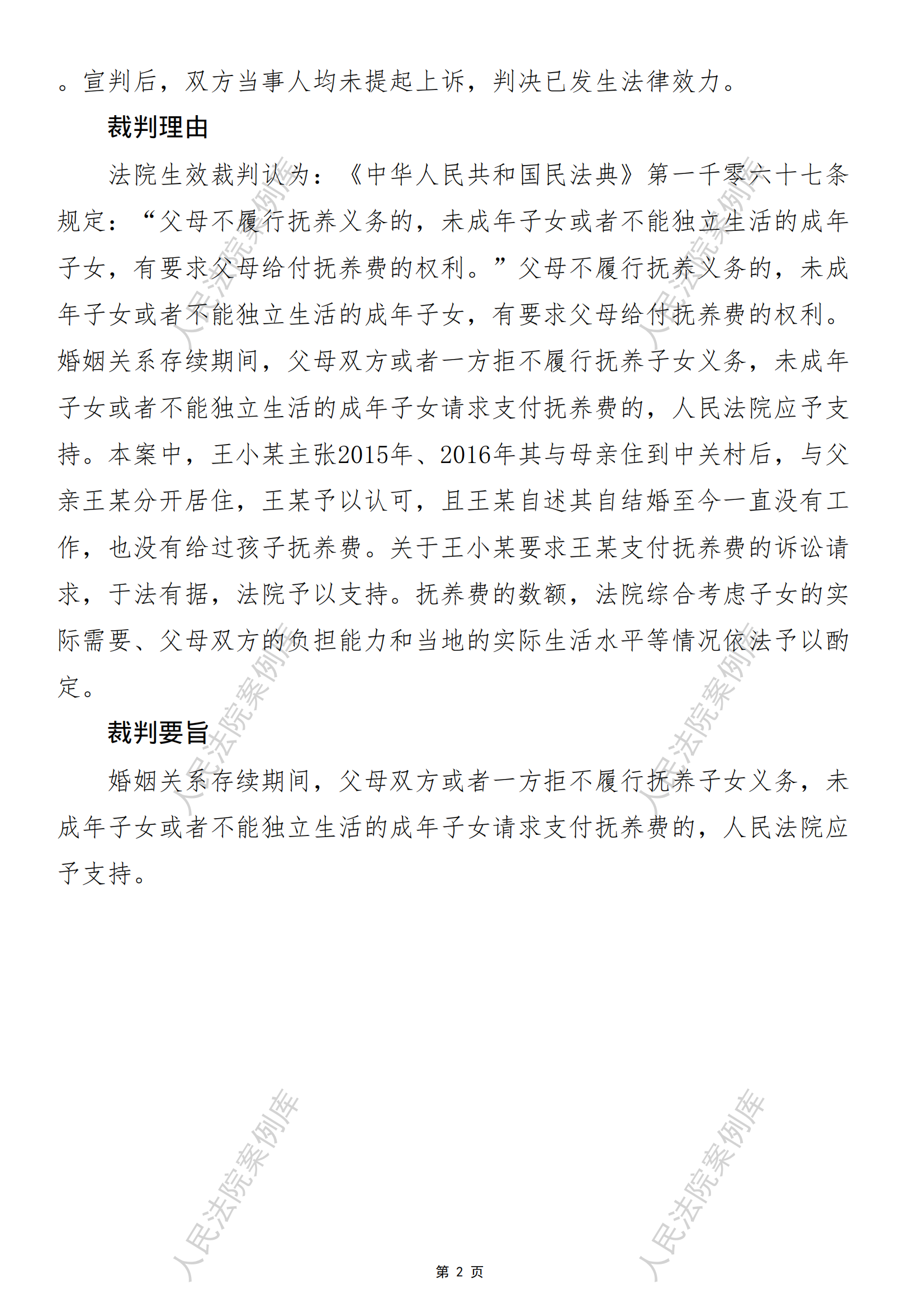 王小某诉王某抚养费纠纷案