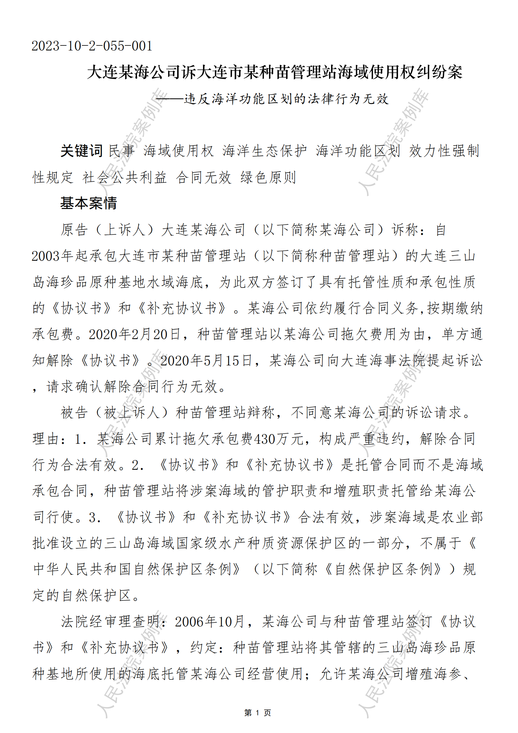 大连某海公司诉大连市某种苗管理站海域使用权纠纷案