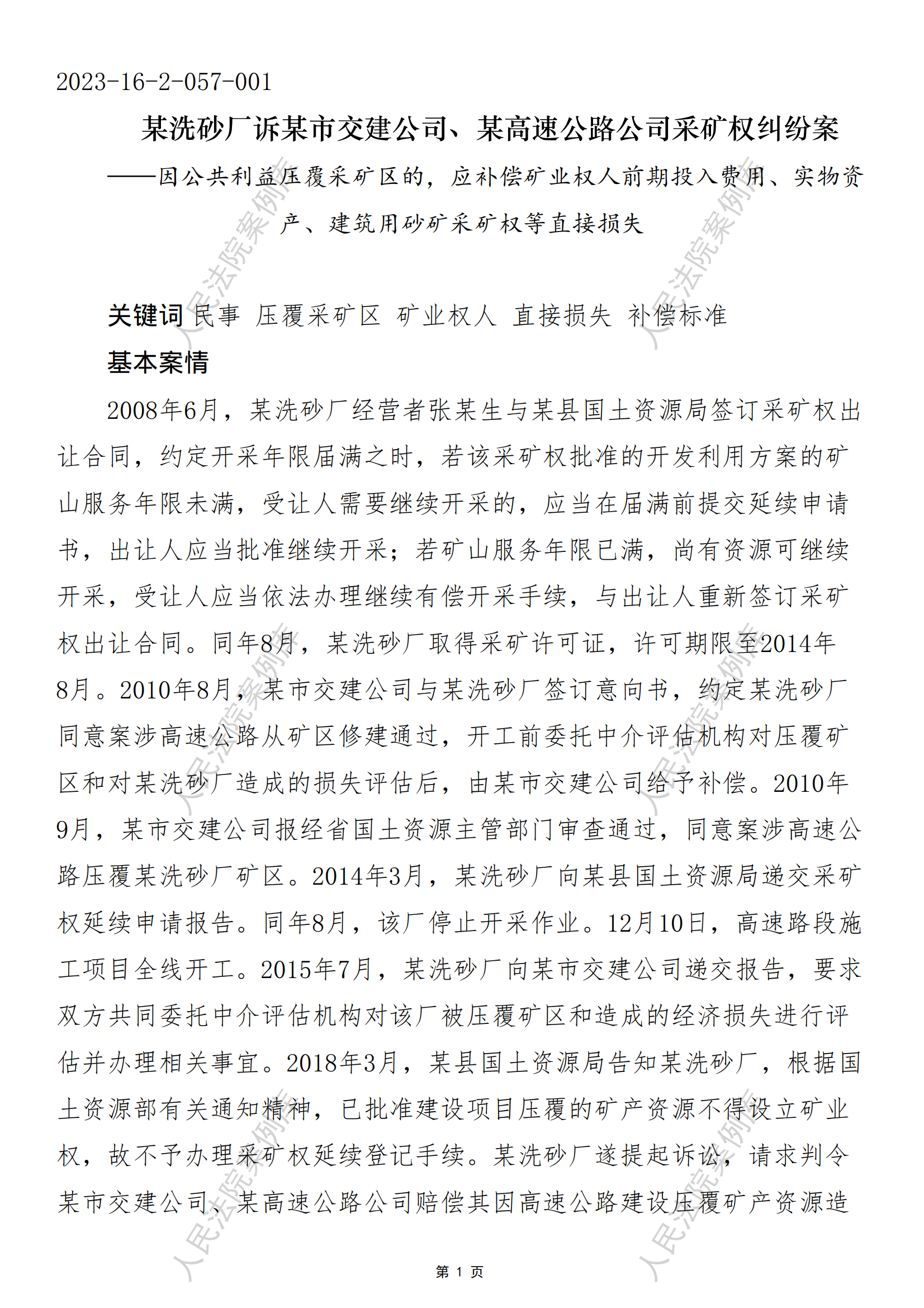 核心提示:——因公共利益压覆采矿区的,应补偿矿业权人前期投入费用、实物资产、建筑用砂矿采矿权等直接损失