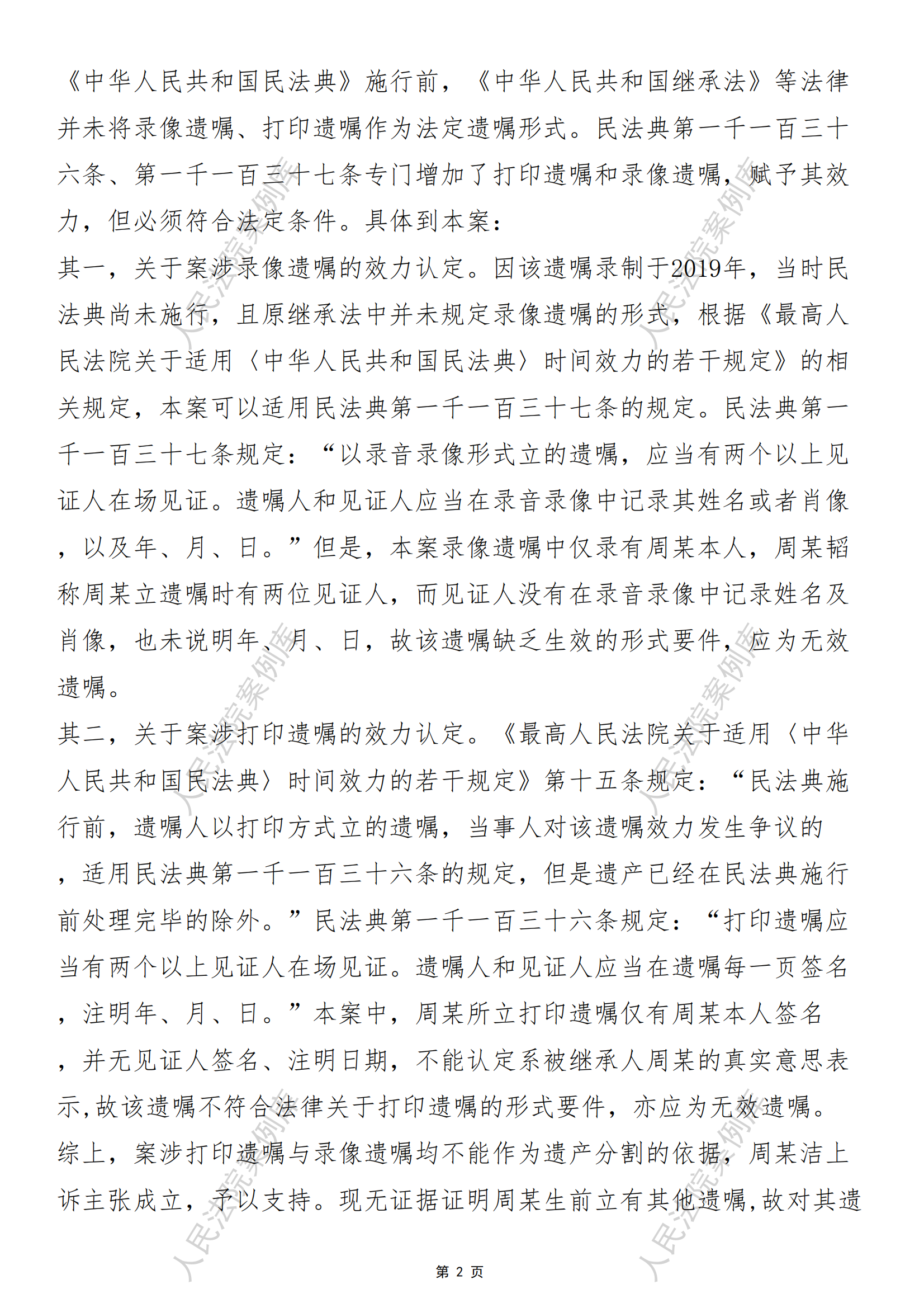 核心提示:——民法典施行前以打印或录像形式所立的遗嘱,适用民法典有关形式要件规定