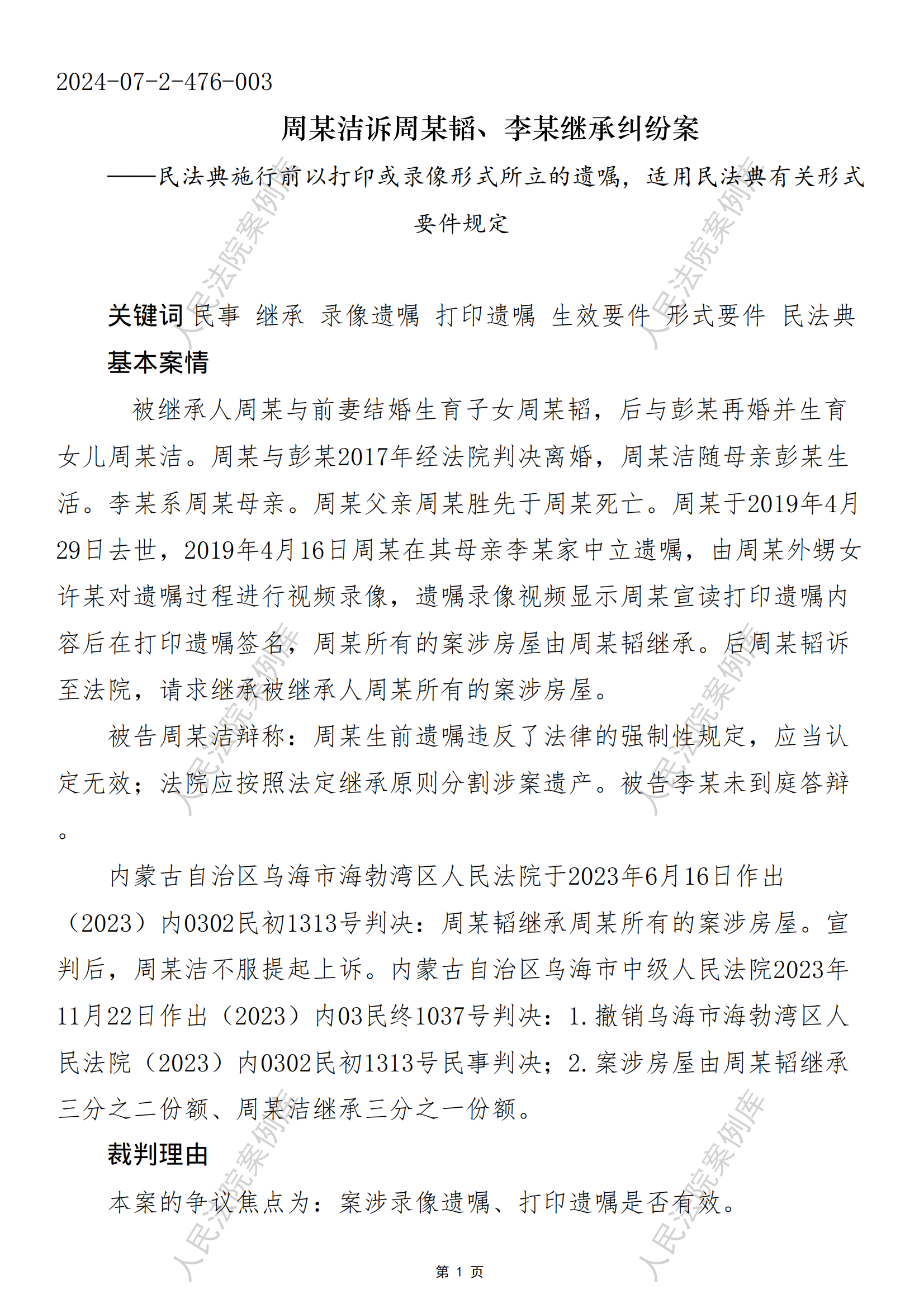 周某洁诉周某韬、李某继承纠纷案