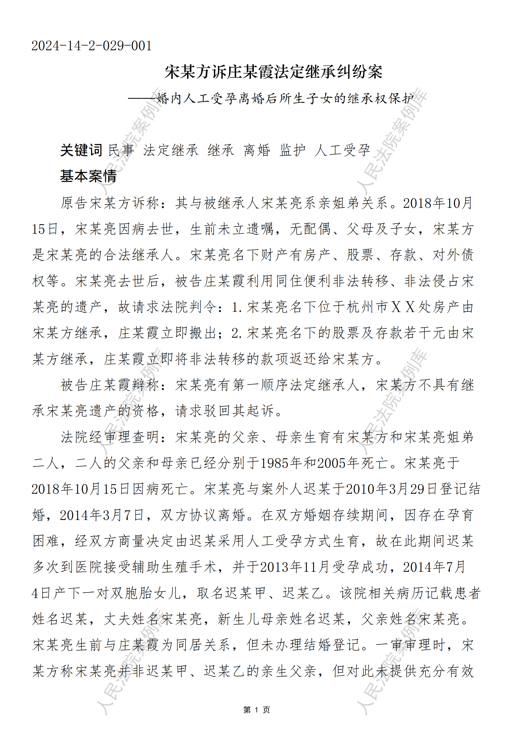 核心提示:——婚内人工受孕离婚后所生子女的继承权保护