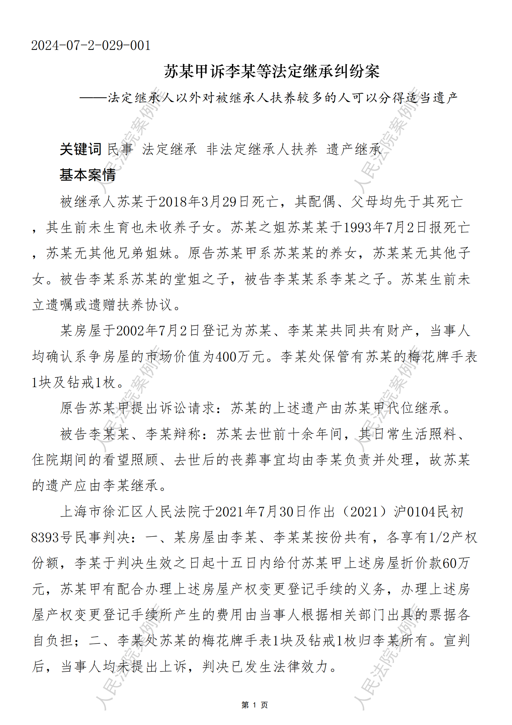 苏某甲诉李某等法定继承纠纷案