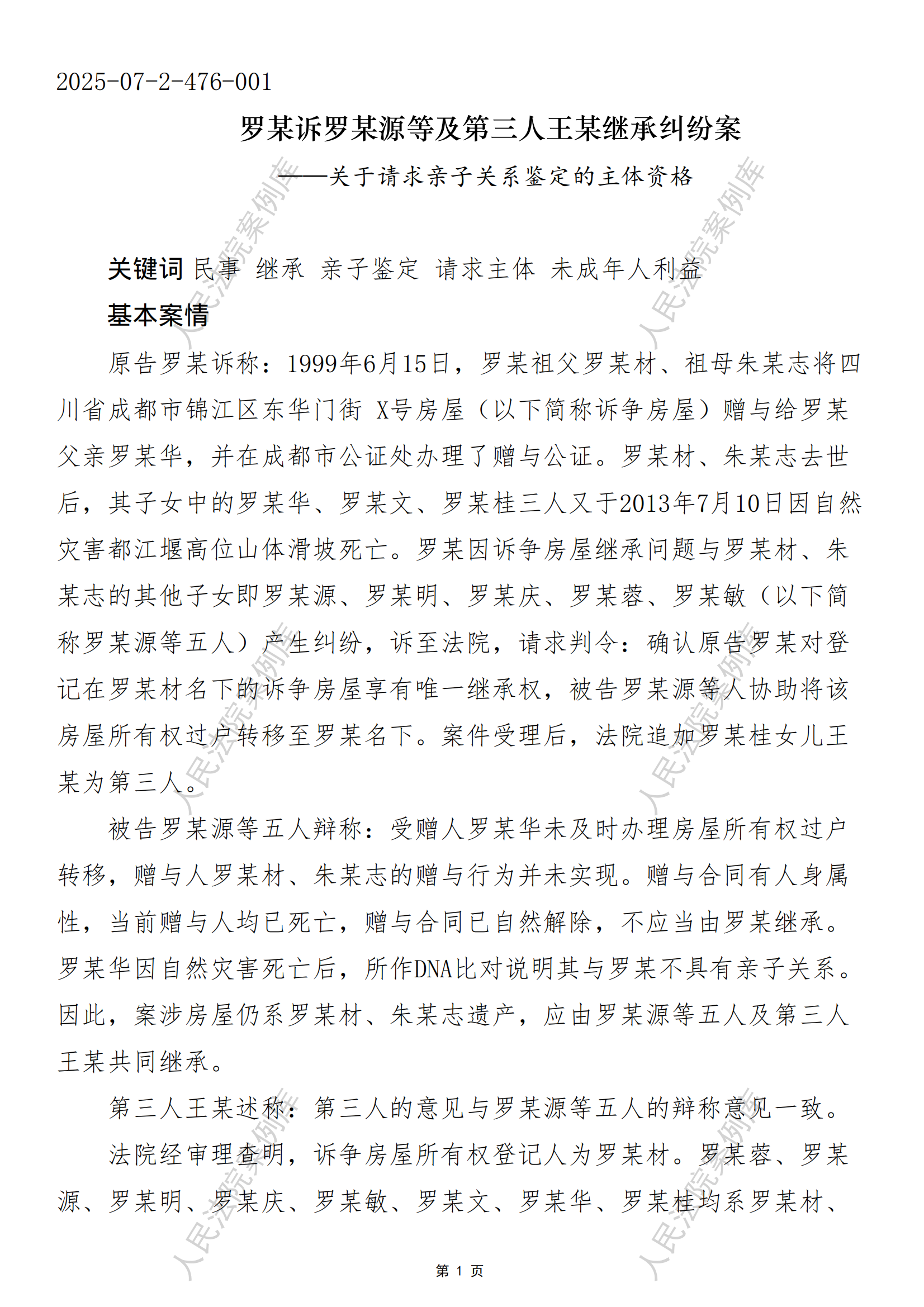 核心提示:——关于请求亲子关系鉴定的主体资格