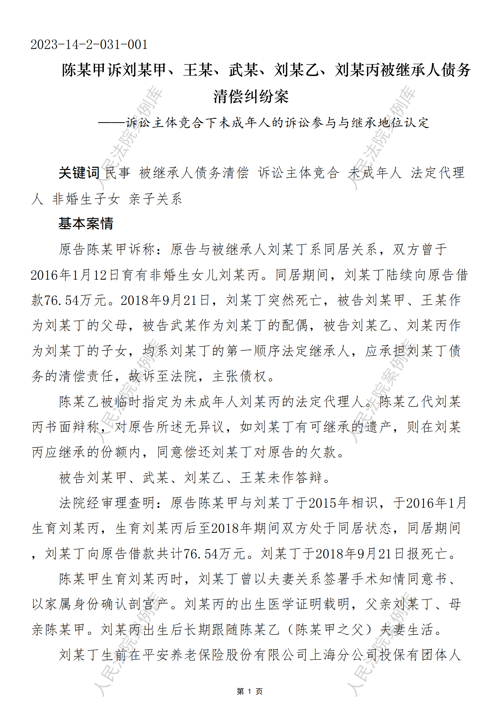 陈某甲诉刘某甲、王某、武某、刘某乙、刘某丙被继承人债务 清偿纠纷案