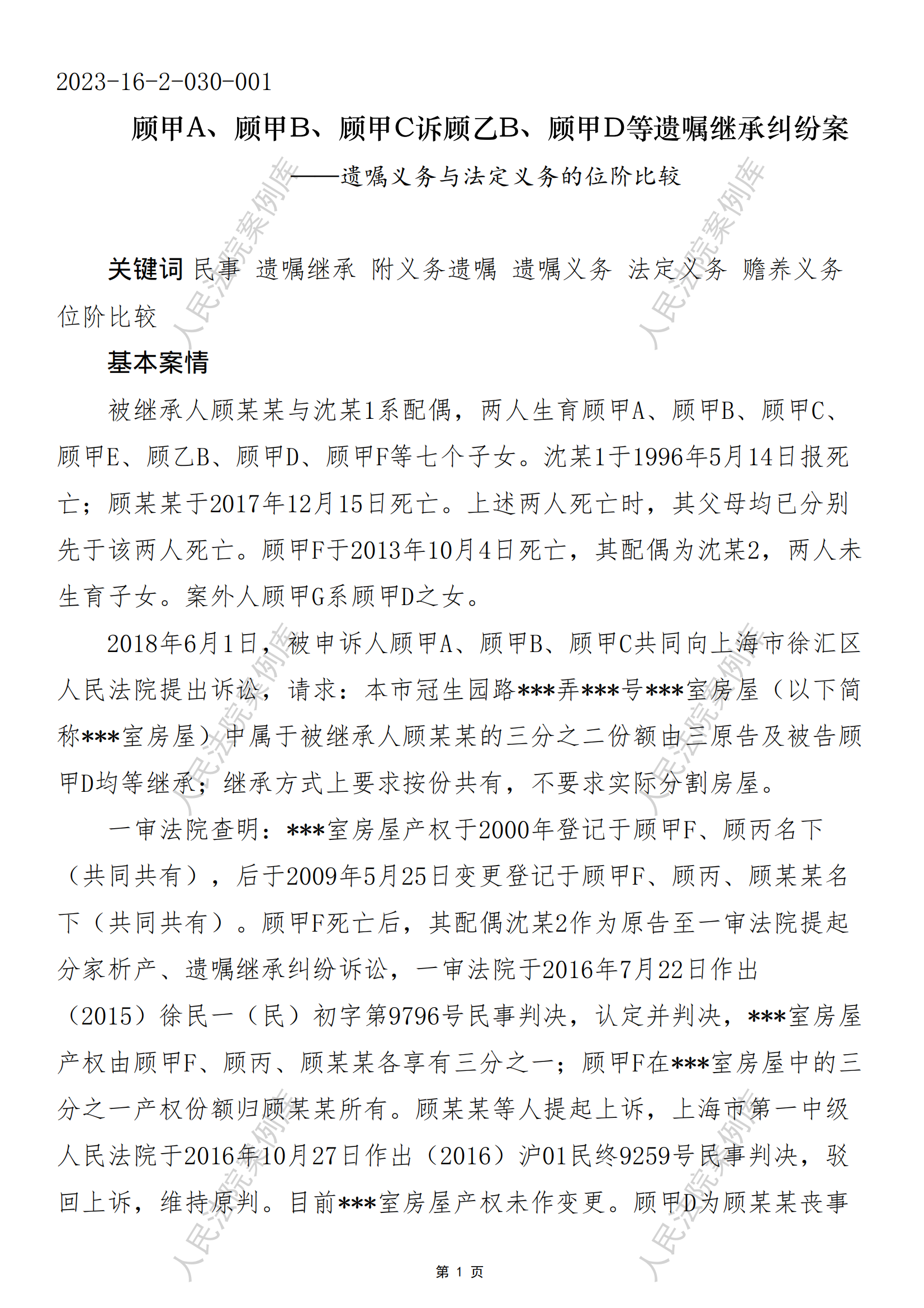 顾甲A、顾甲B、顾甲C诉顾乙B、顾甲D等遗嘱继承纠纷案