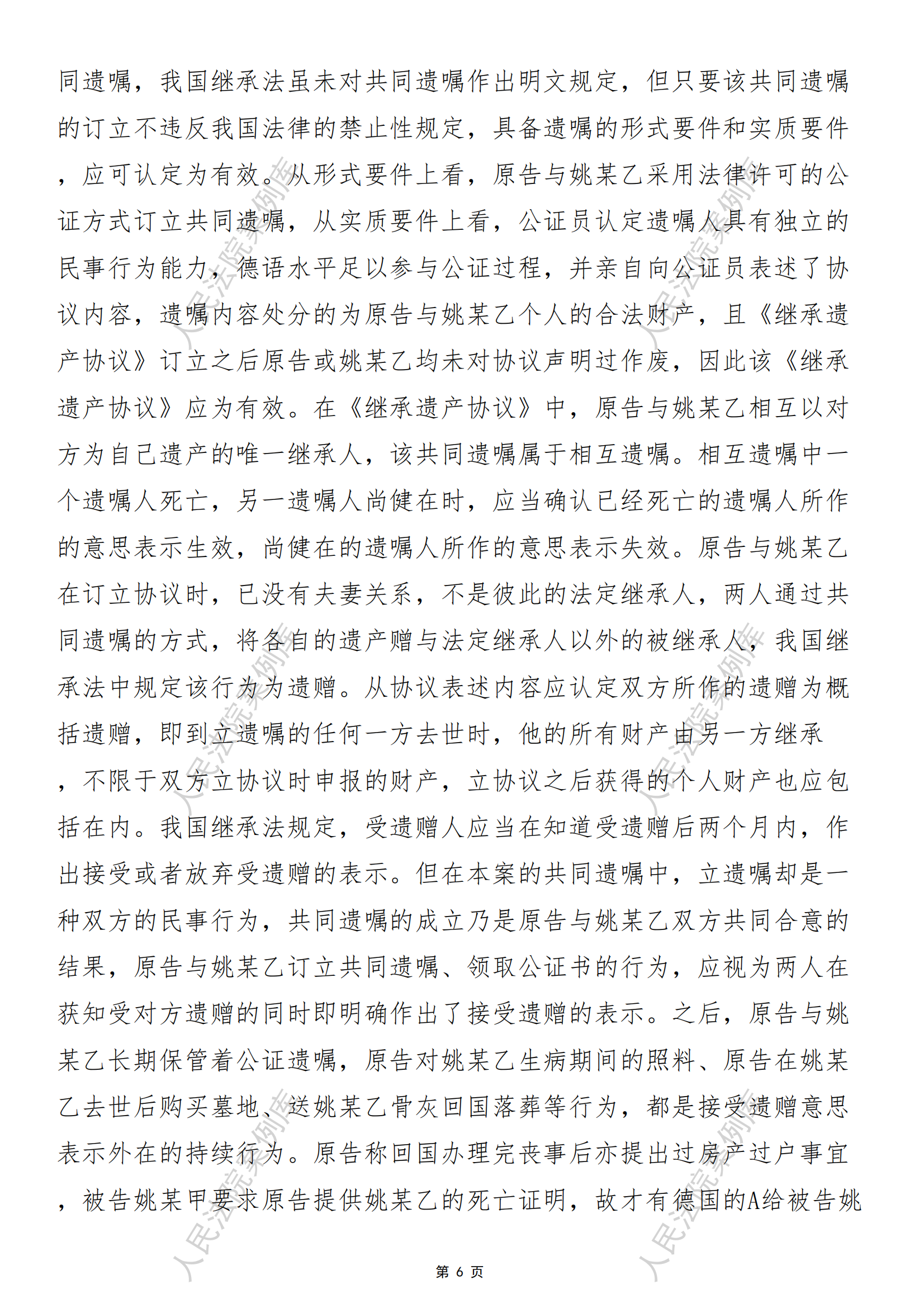 严某诉姚某甲等遗赠、物权确认纠纷案