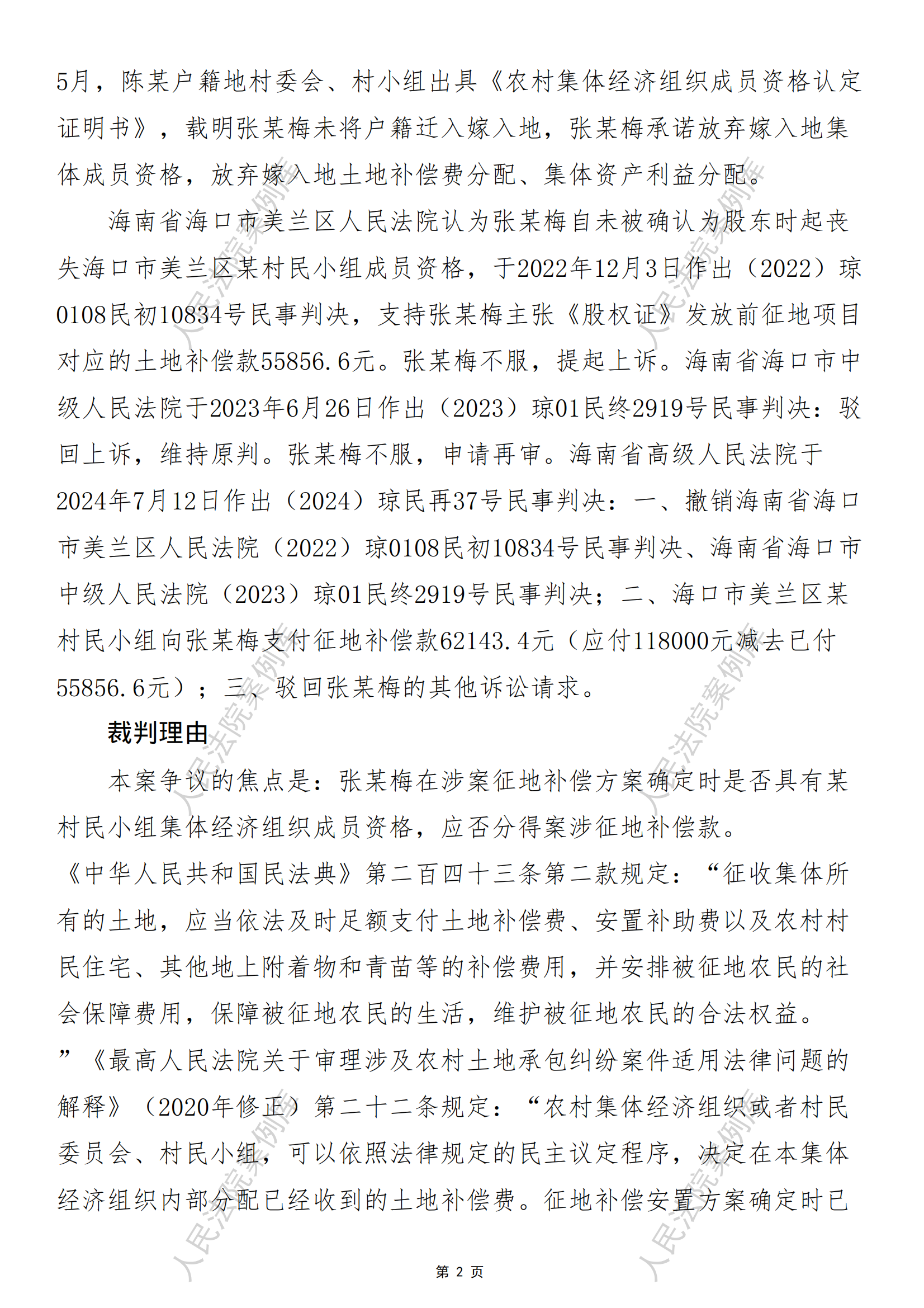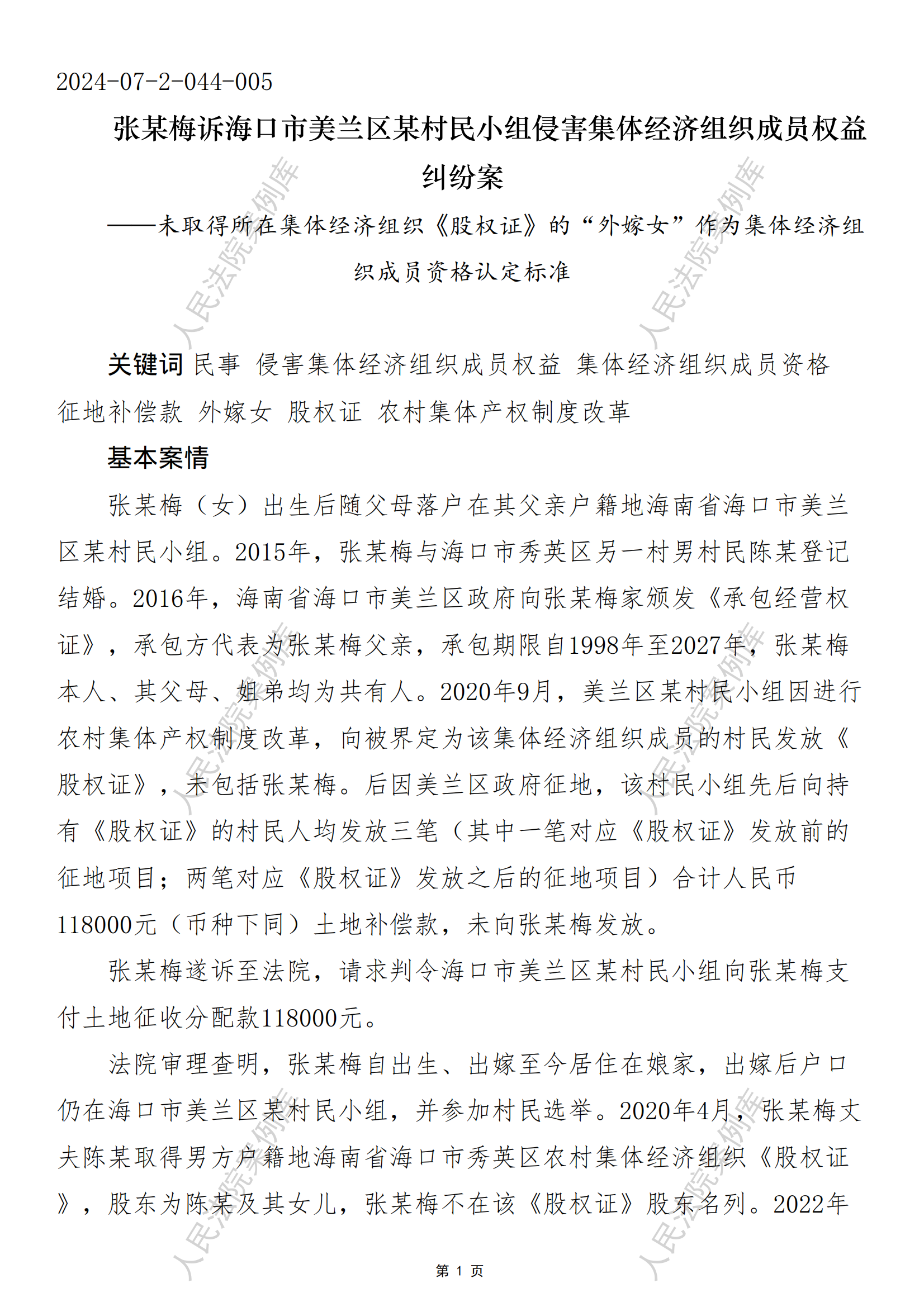 张某梅诉海口市美兰区某村民小组侵害集体经济组织成员权益