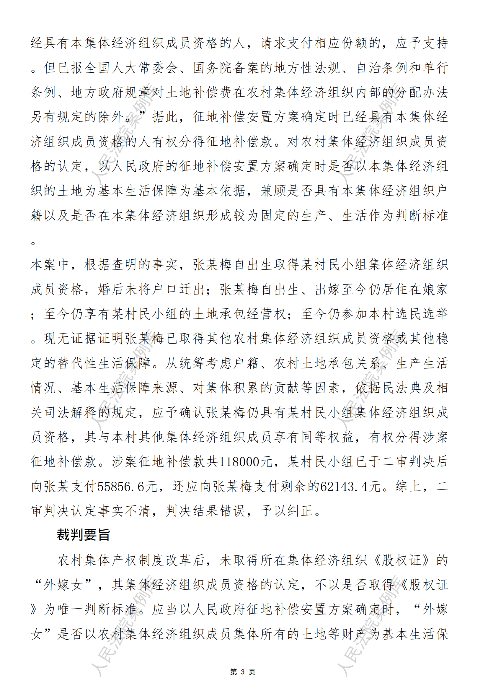核心提示:——未取得所在集体经济组织《股权证》的“外嫁女”作为集体经济组织成员资格认定标准