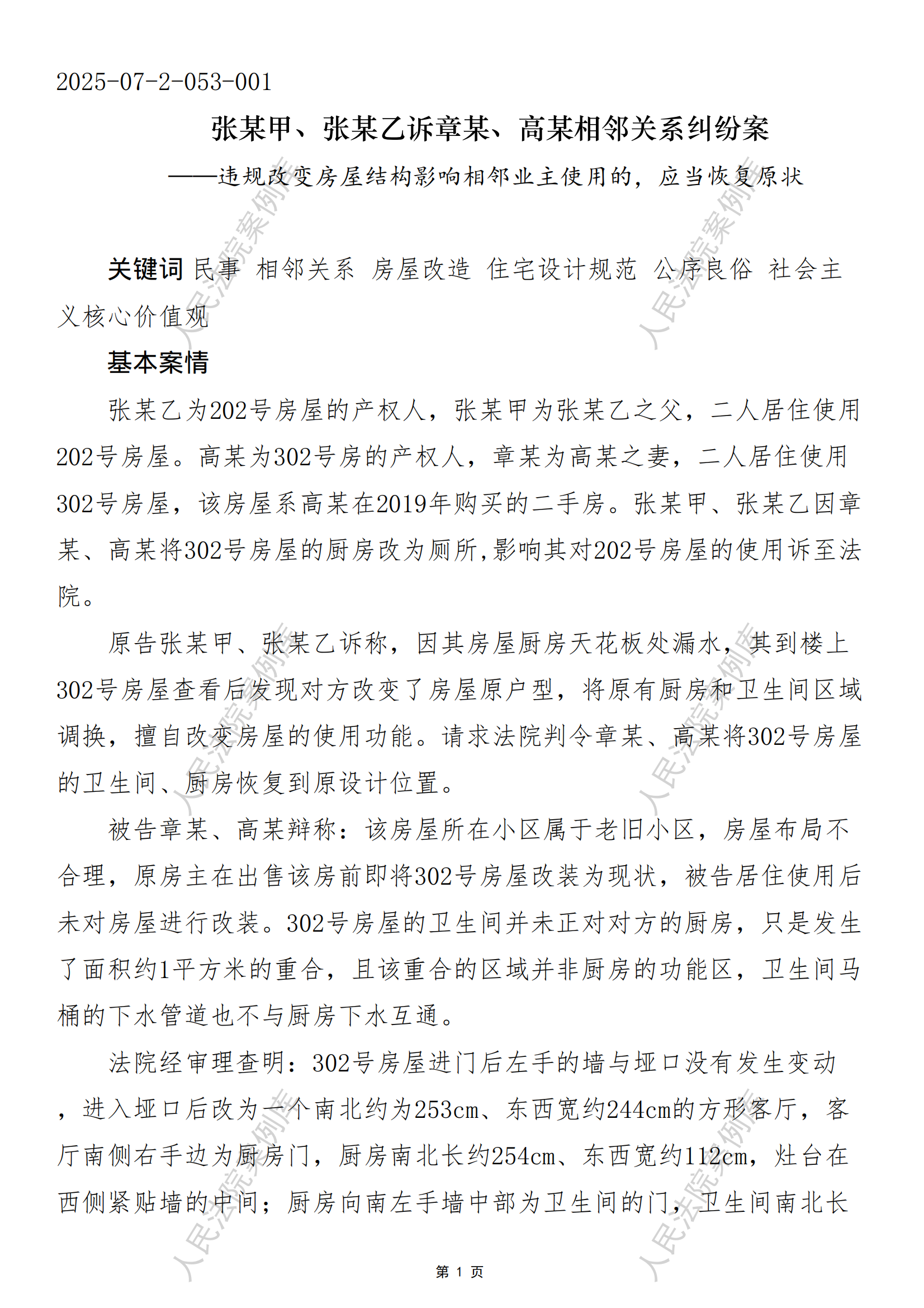 张某甲、张某乙诉章某、高某相邻关系纠纷案