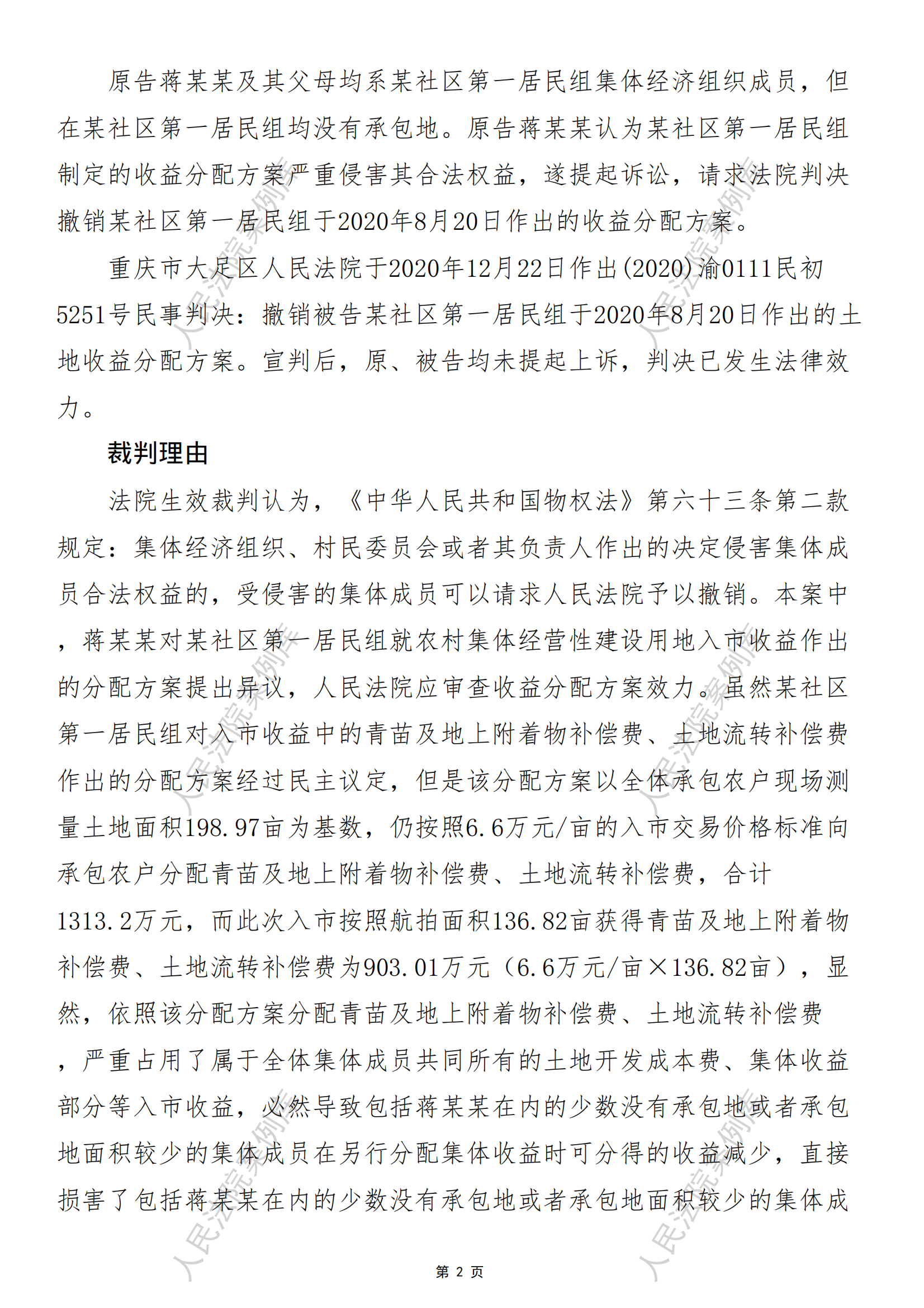 核心提示:——侵害集体经济组织成员合法权益的收益分配方案应依法撤销