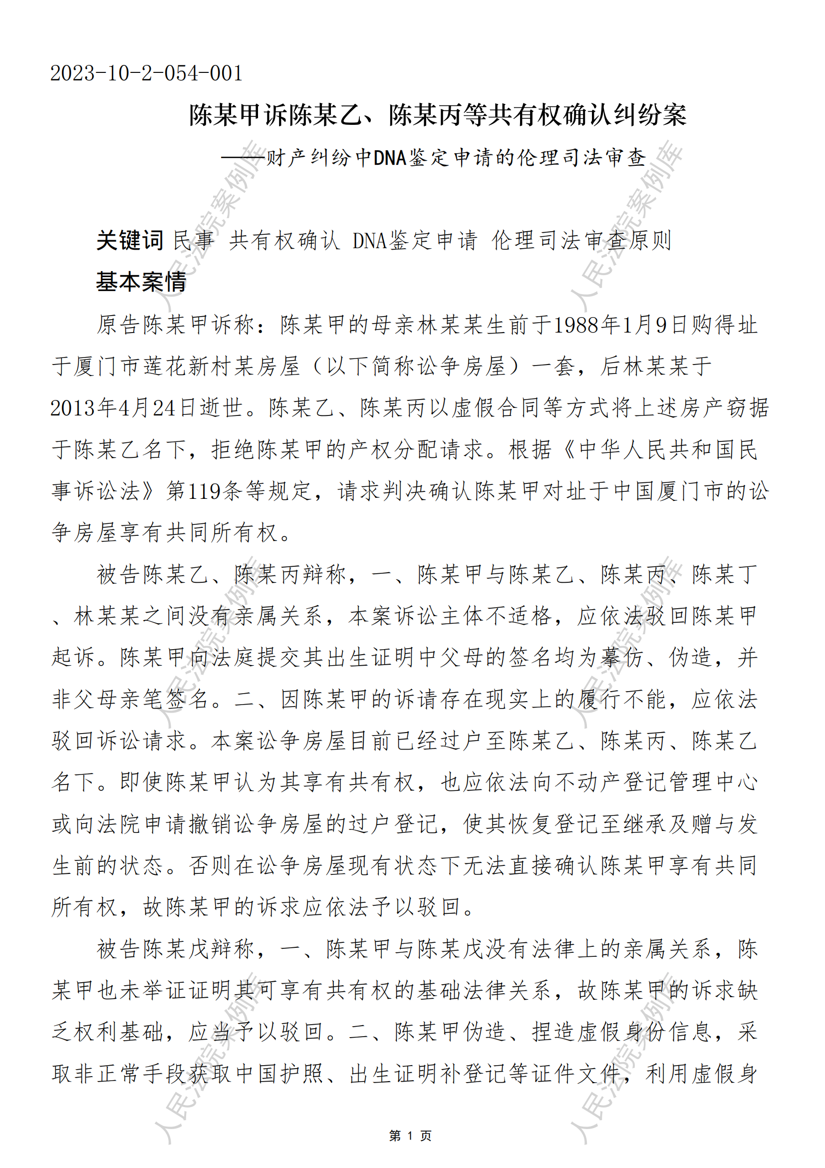 核心提示:——财产纠纷中DNA鉴定申请的伦理司法审查