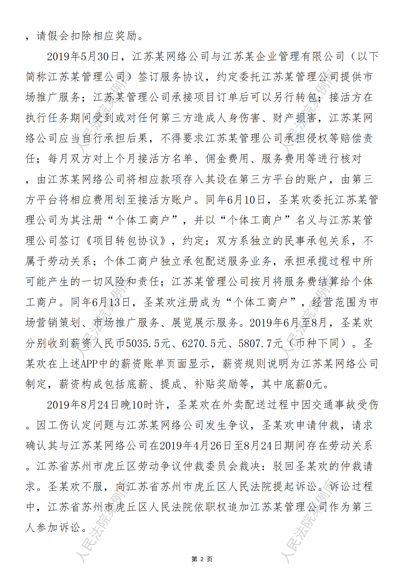 指导性案例238号:圣某欢诉江苏某网络科技有限公司确认劳 动关系纠纷案
