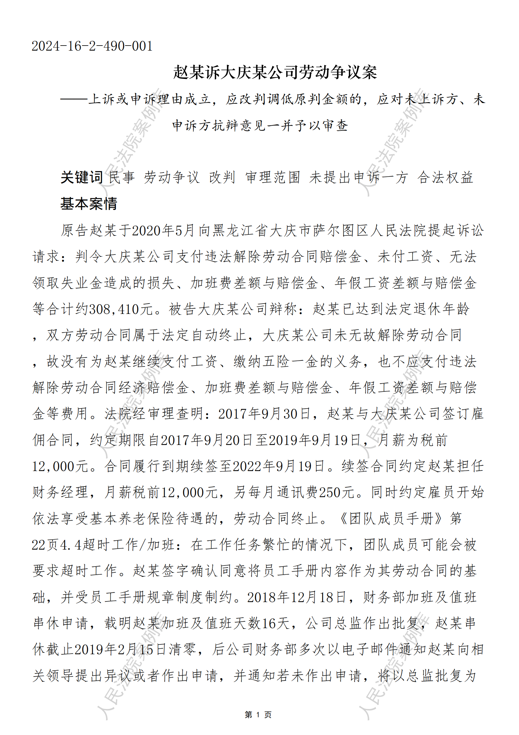 赵某诉大庆某公司劳动争议案