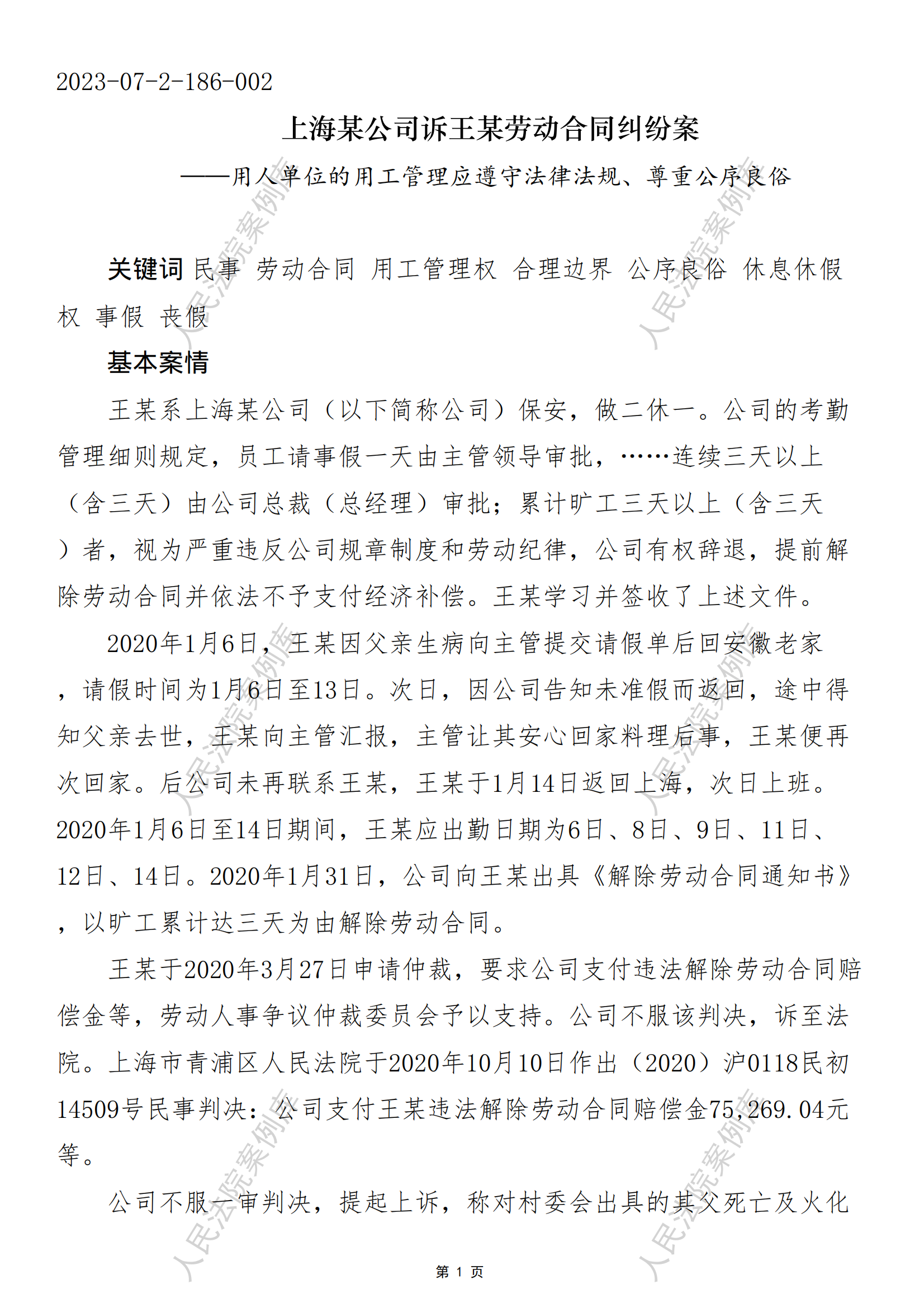 • 指导案例190号:王山诉万得信息技术股份有限公