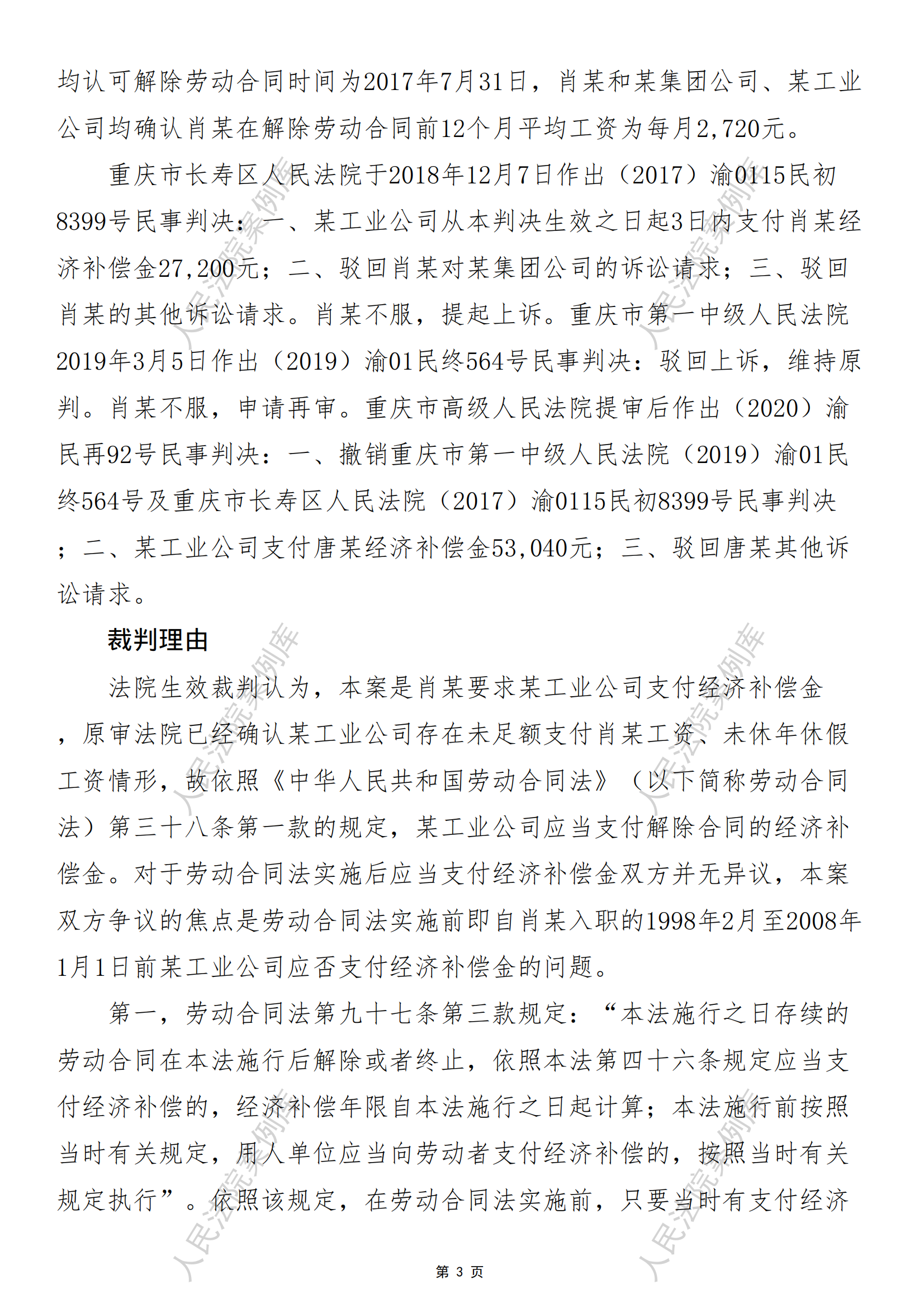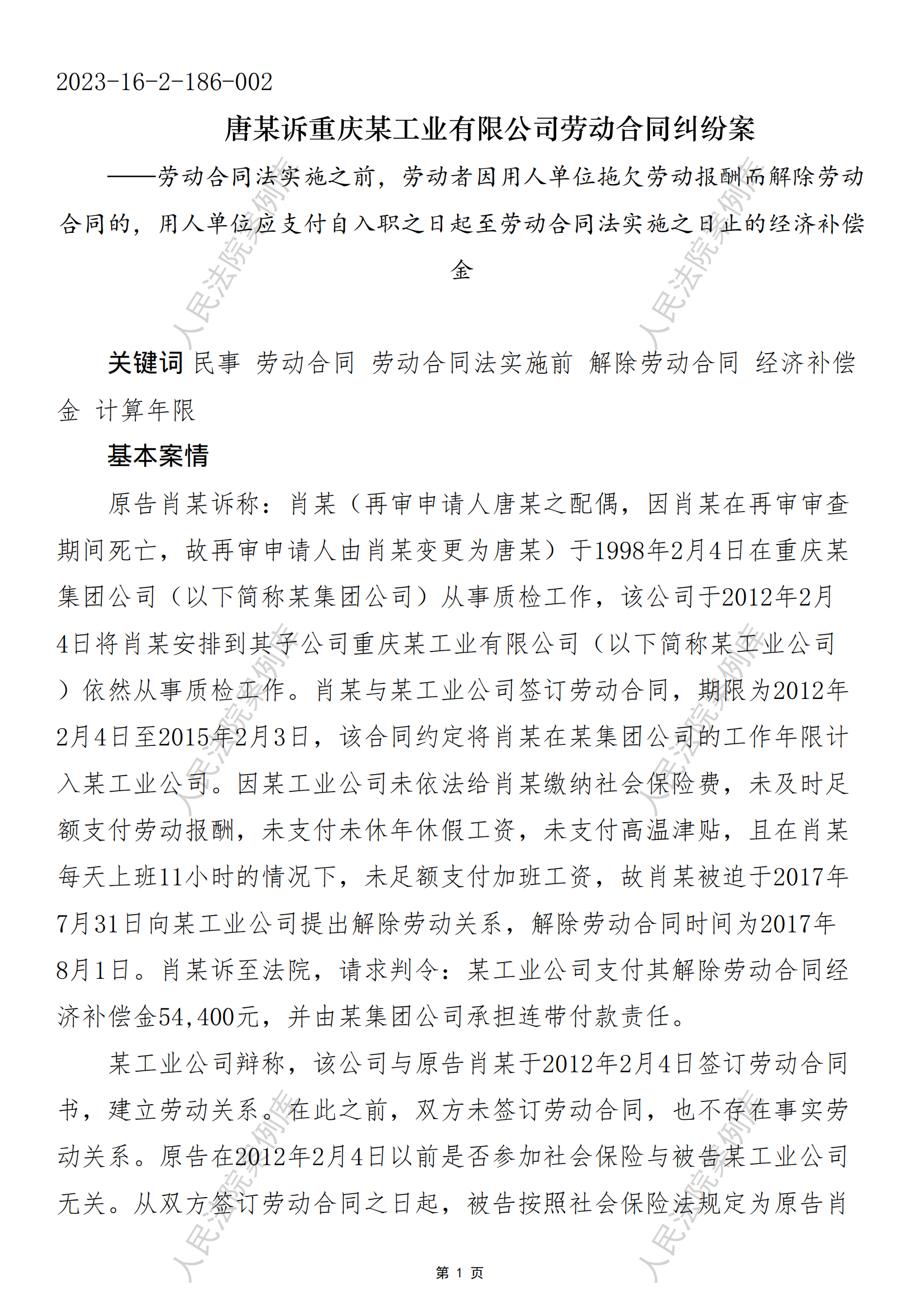 唐某诉重庆某工业有限公司劳动合同纠纷案
