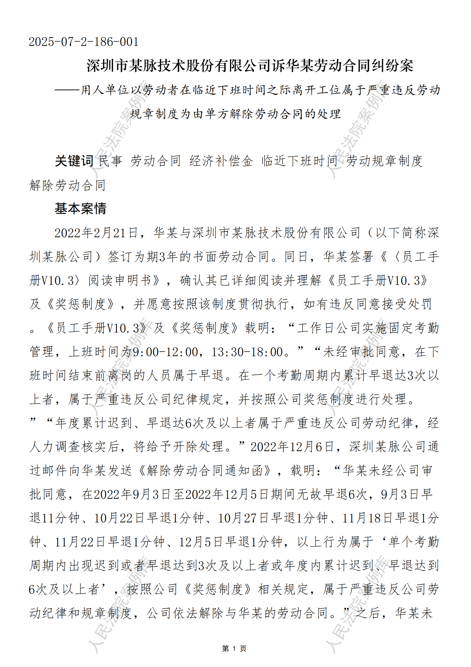 深圳市某脉技术股份有限公司诉华某劳动合同纠纷案