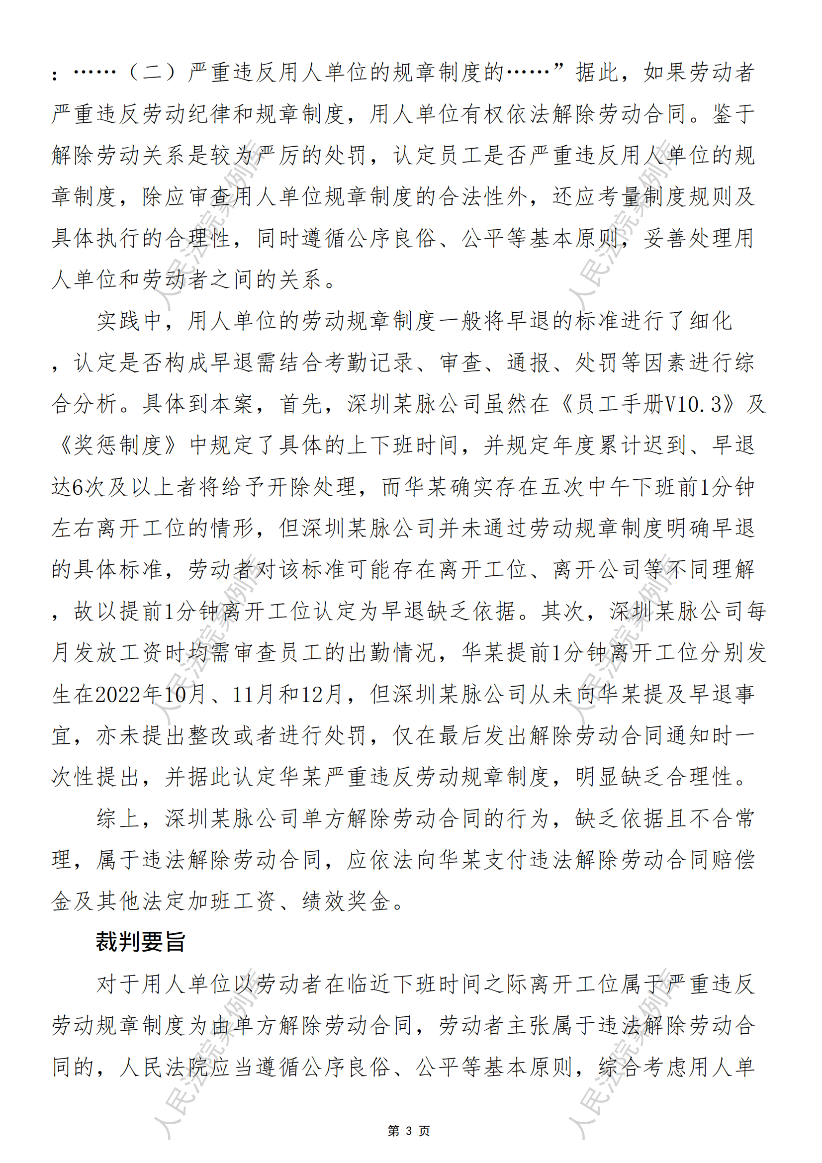 核心提示:——用人单位以劳动者在临近下班时间之际离开工位属于严重违反劳动规章制度为由单方解除劳动合同的处理