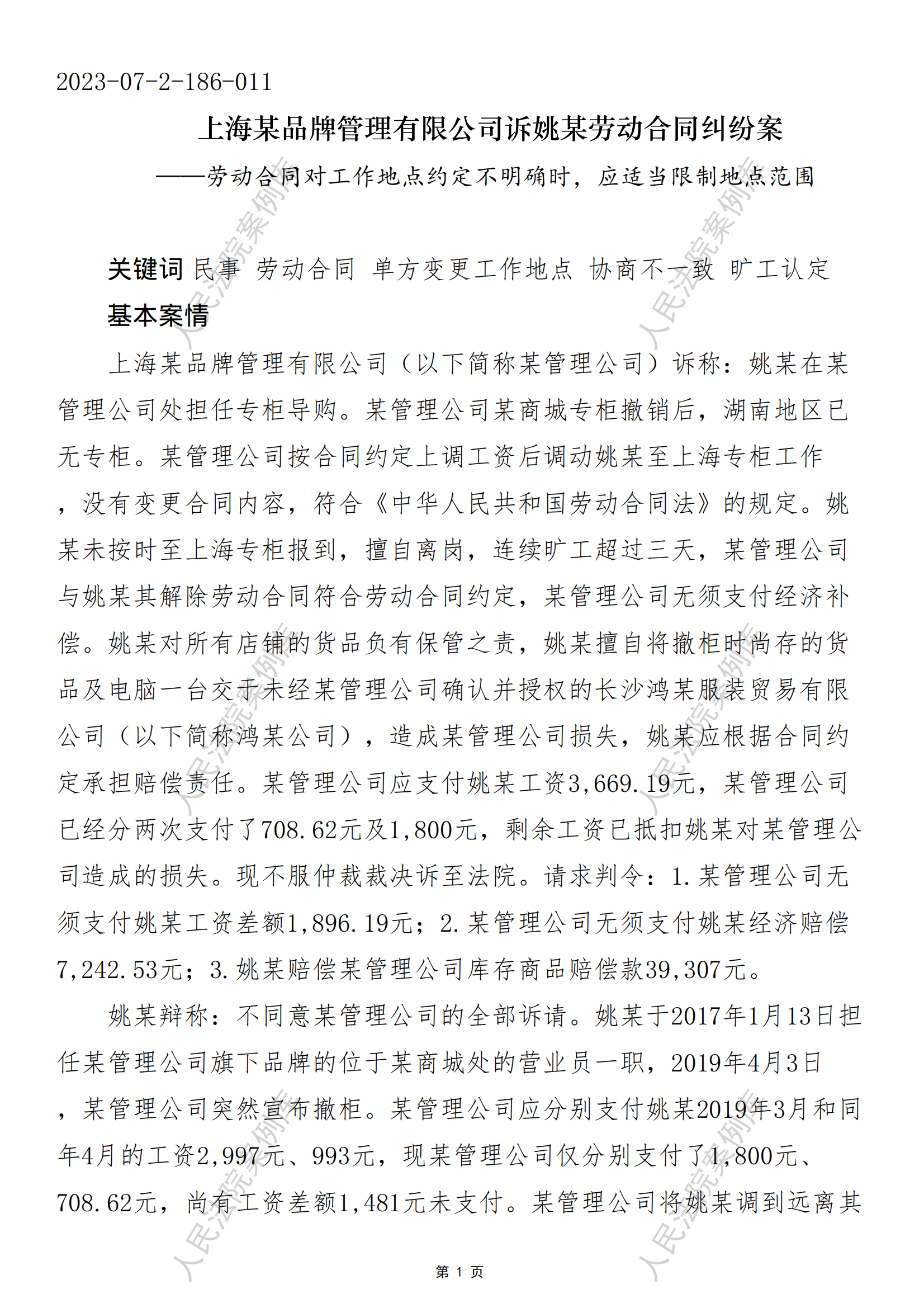 上海某品牌管理有限公司诉姚某劳动合同纠纷案
