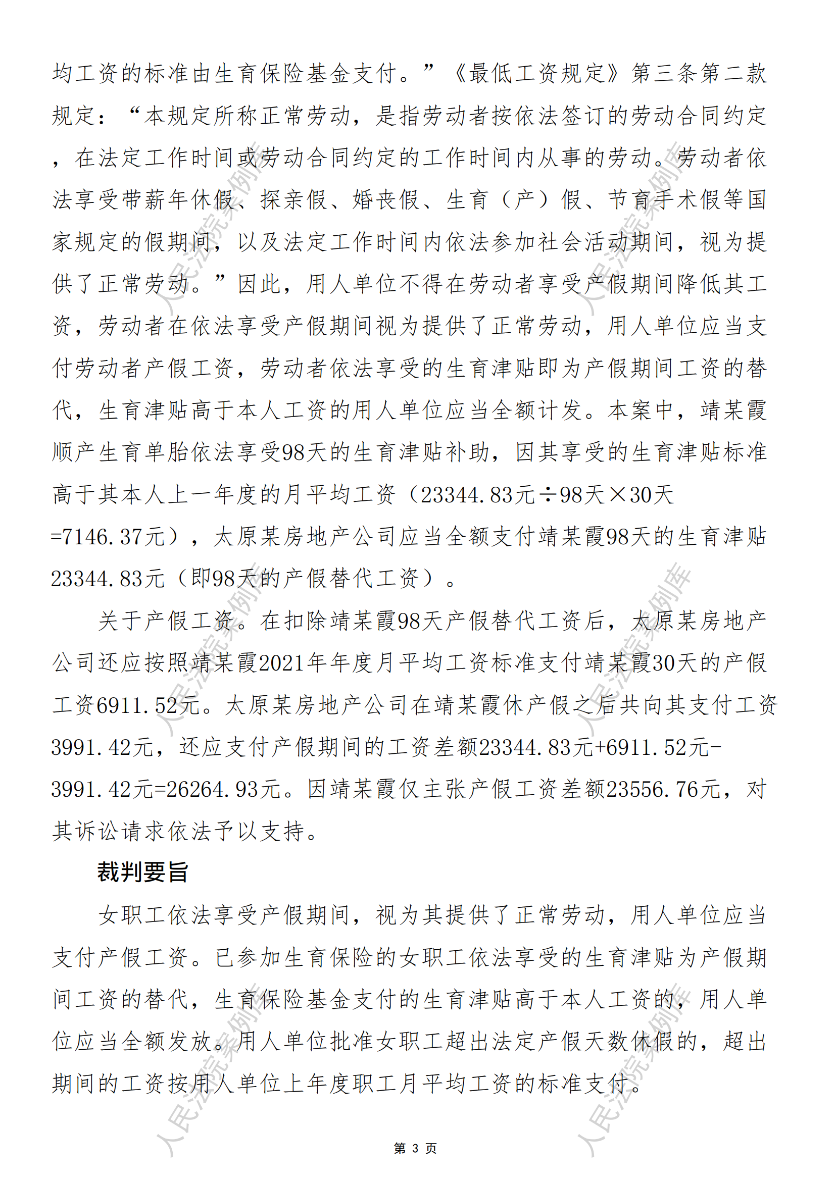 核心提示:——女职工依法享受的生育津贴系产假期间工资的替代,生育津贴高于本人工资的,用人单位应当全额发放