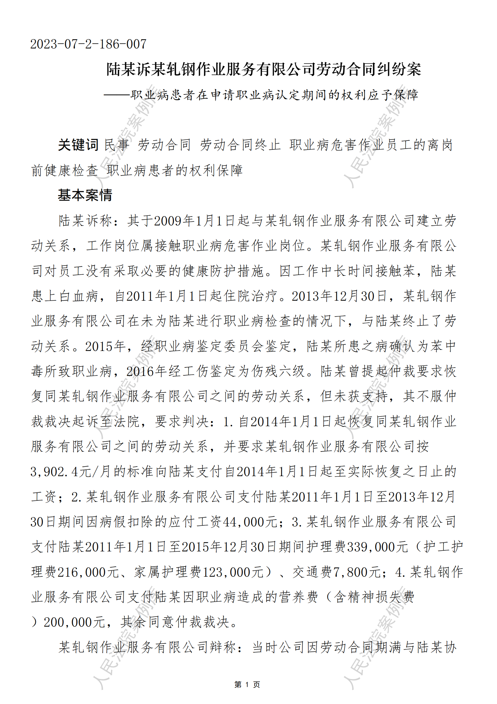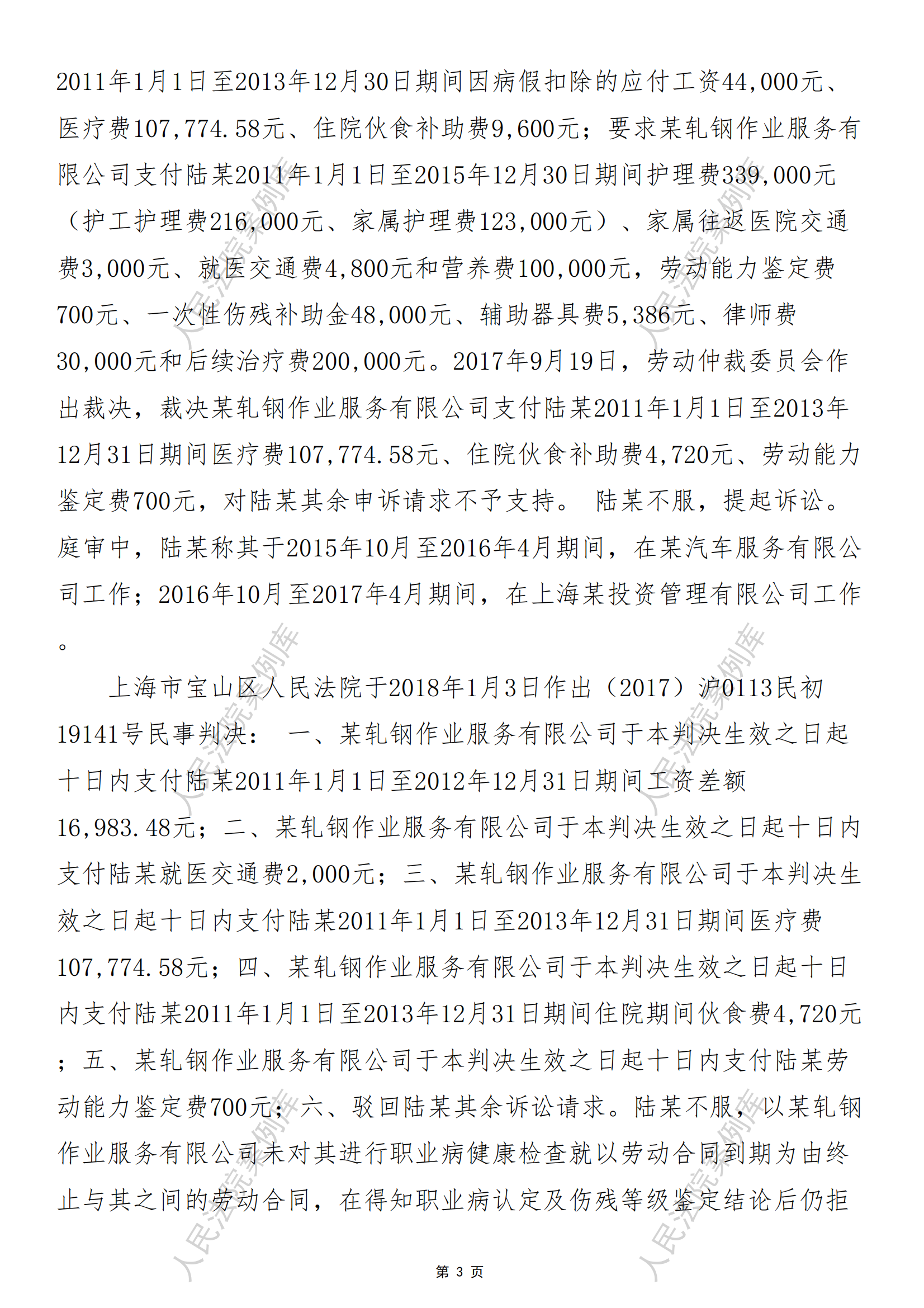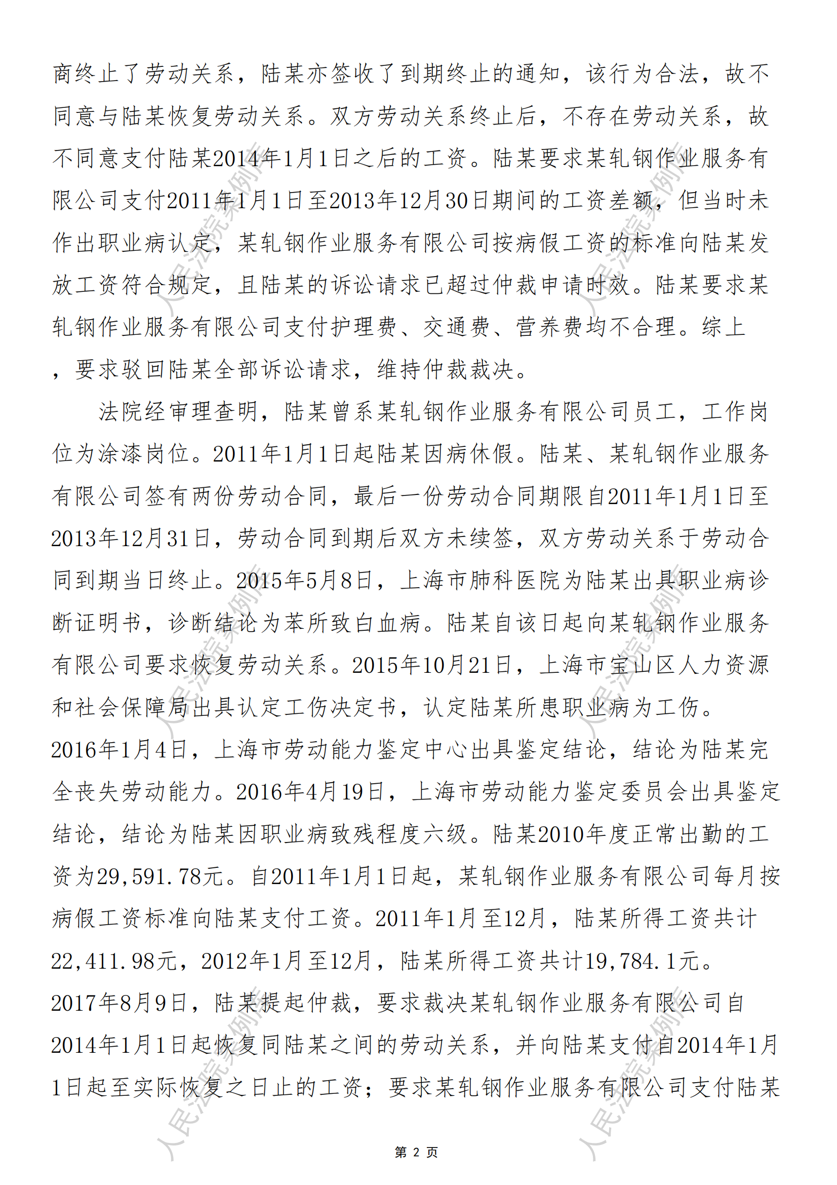 陆某诉某轧钢作业服务有限公司劳动合同纠纷案