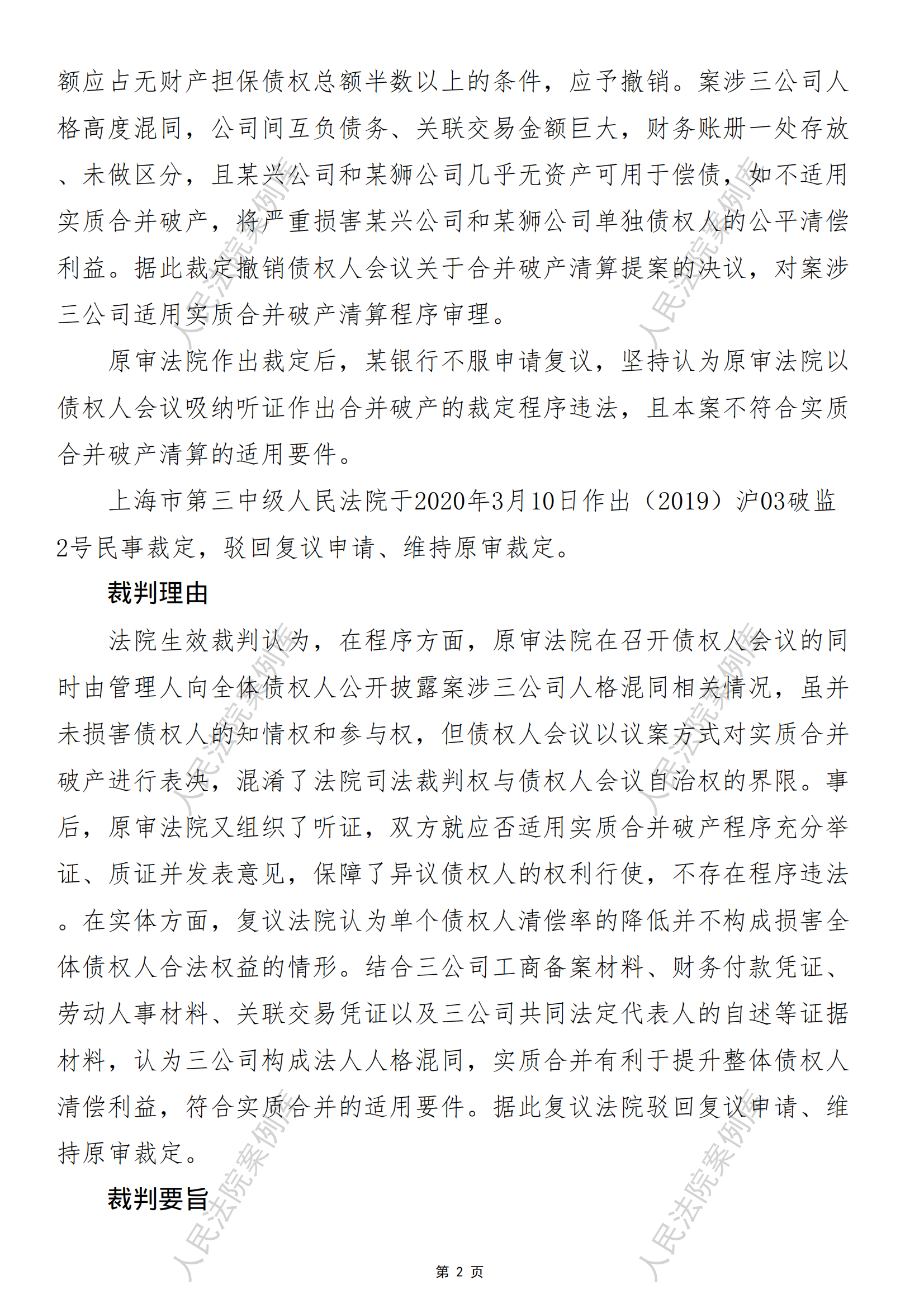 核心提示:----关联企业实质合并破产的审查及复议