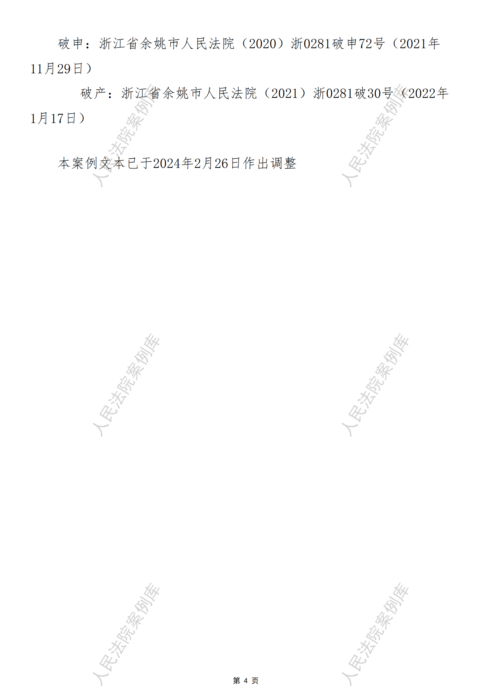 余姚某某投资有限公司破产程序案件