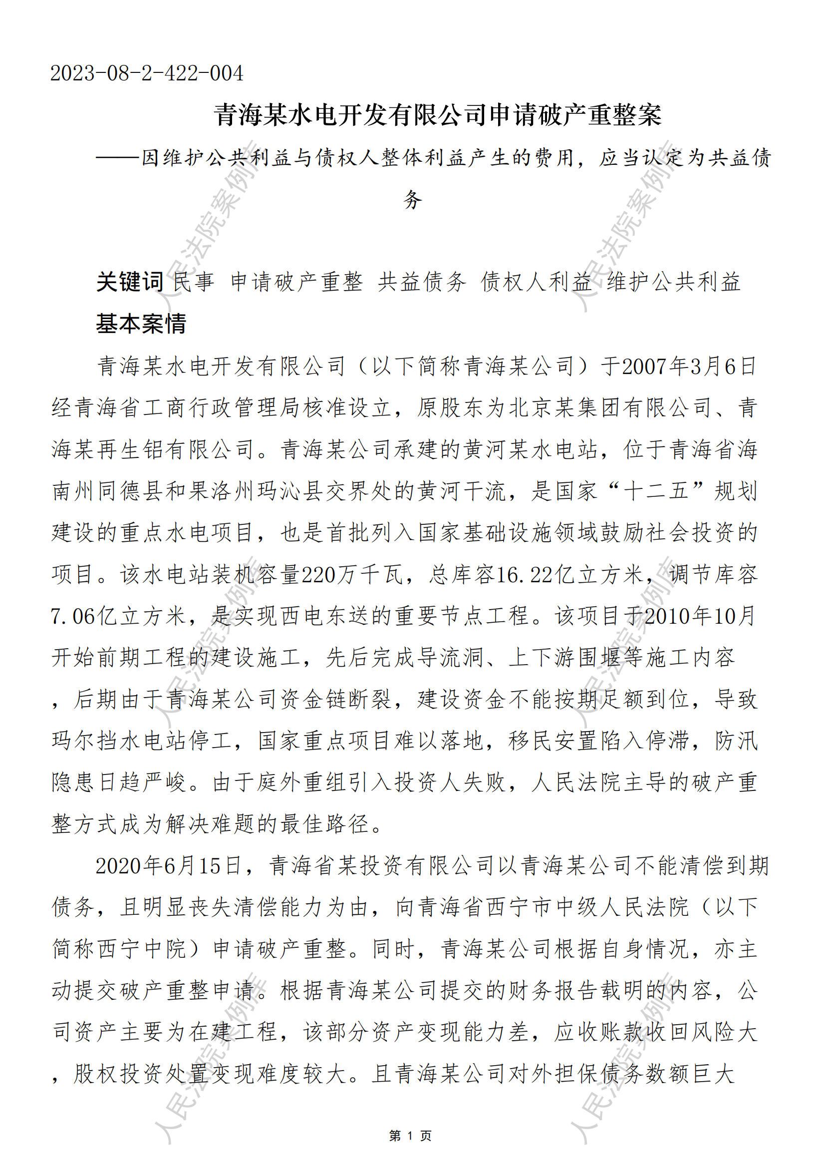 • 青海省某投资有限公司等十七家企业申请破产重整