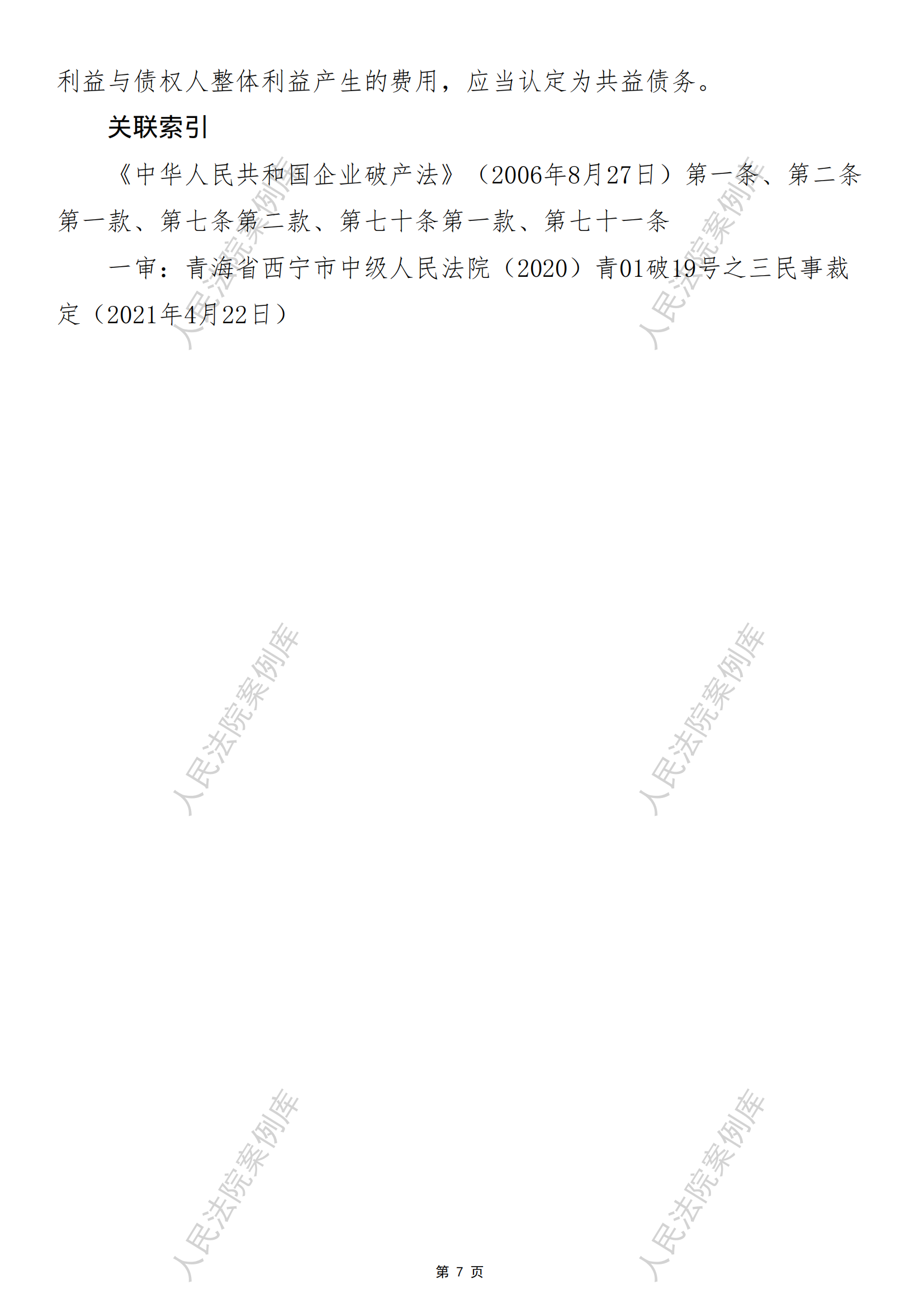 核心提示:——因维护公共利益与债权人整体利益产生的费用,应当认定为共益债务