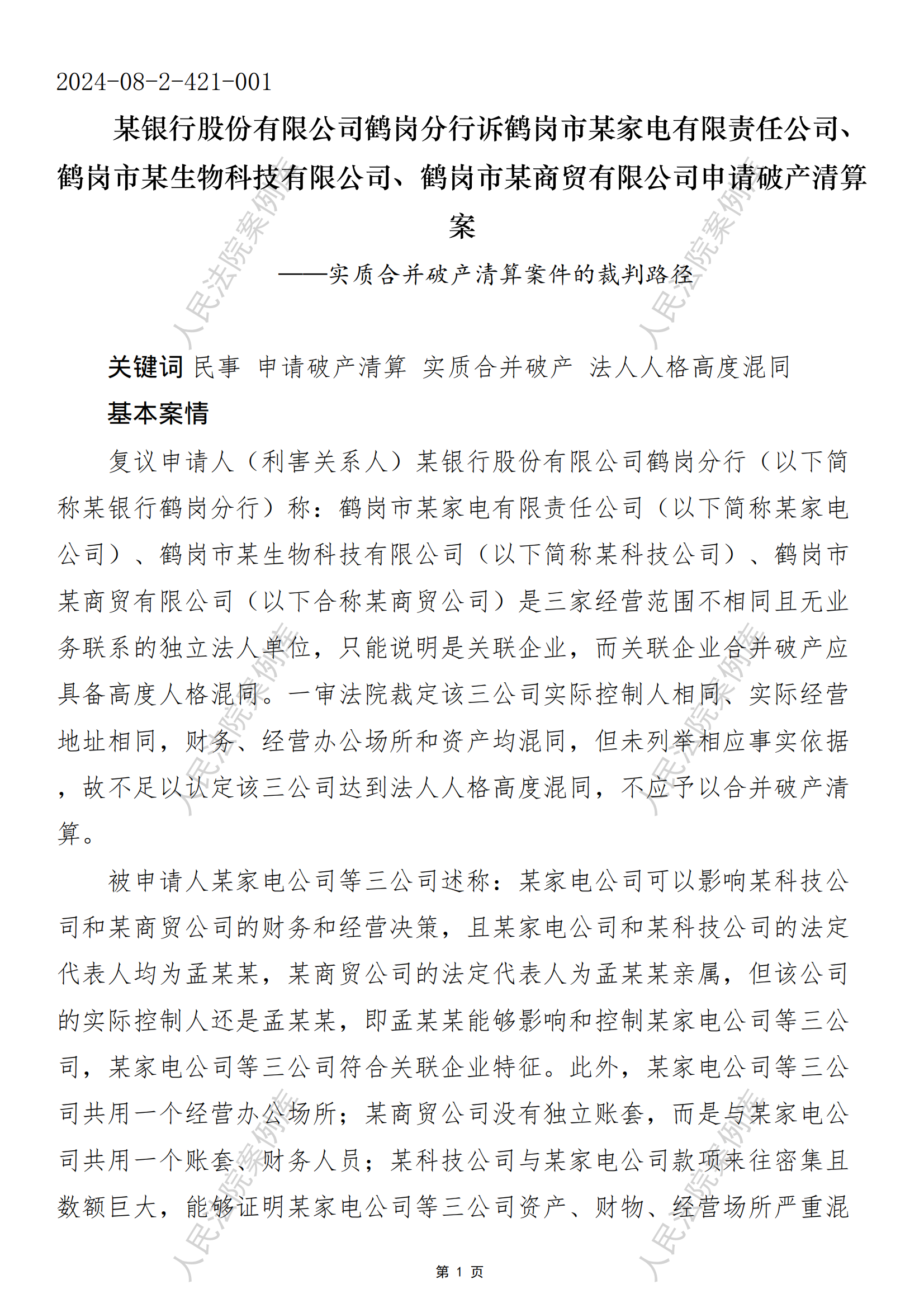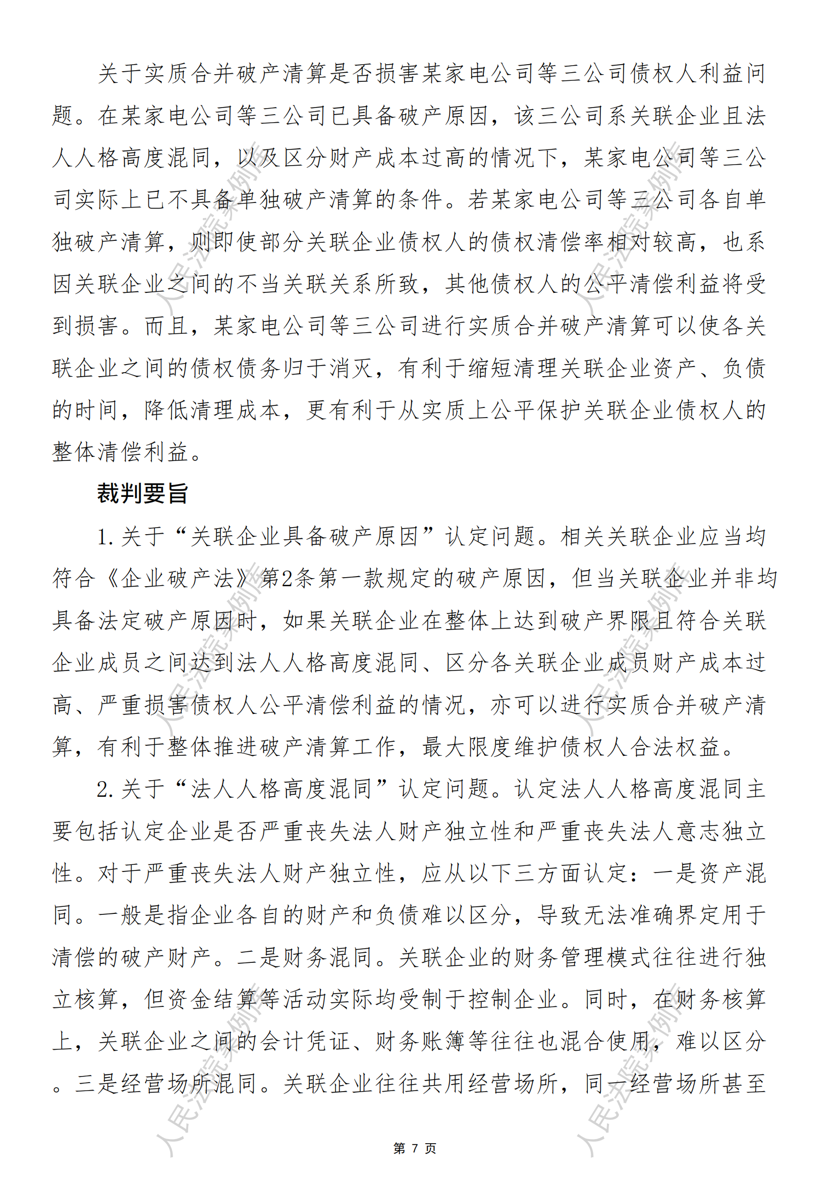 核心提示:——实质合并破产清算案件的裁判路径