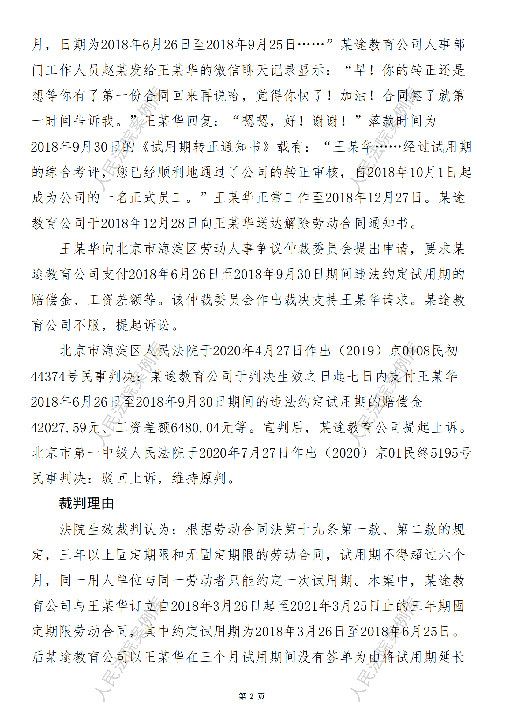 某途教育公司诉王某华劳动争议案
