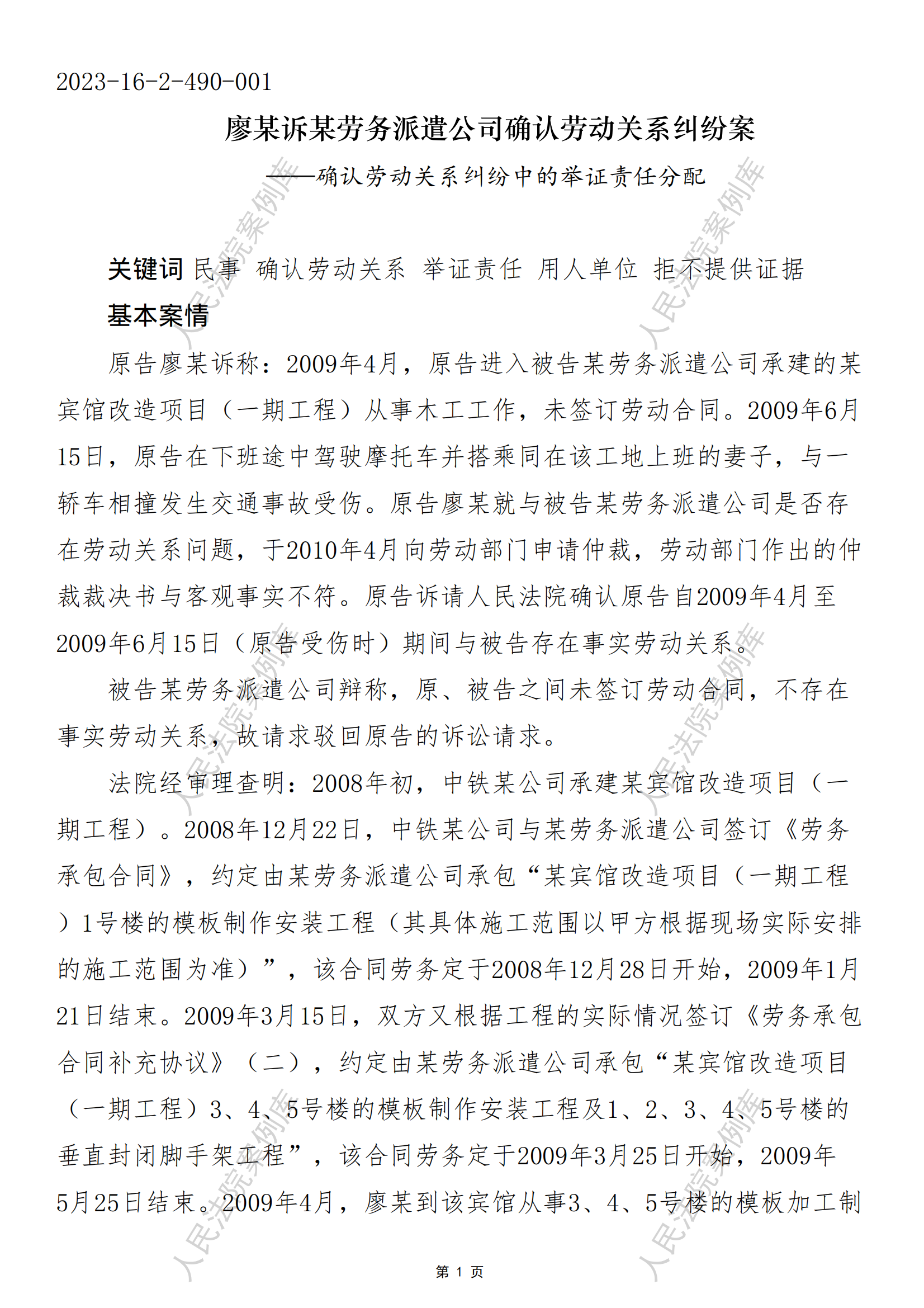 核心提示:——确认劳动关系纠纷中的举证责任分配