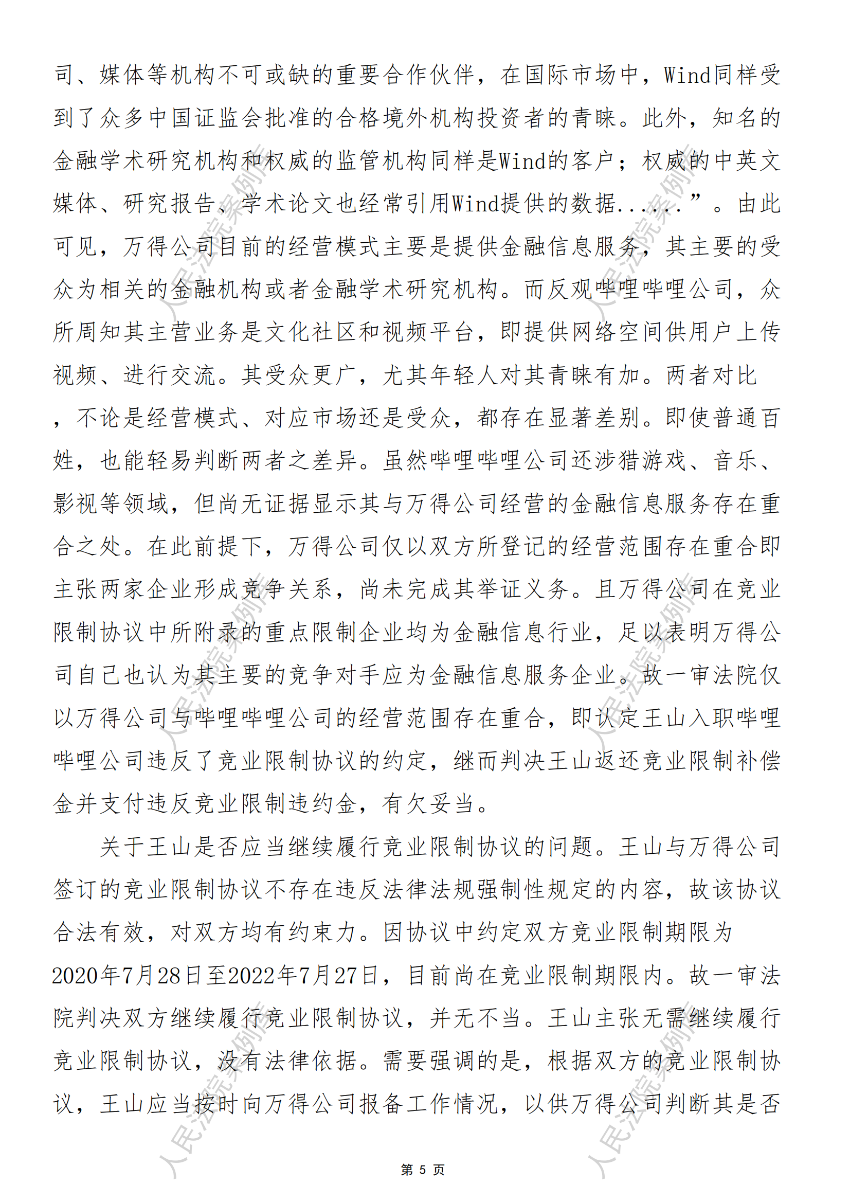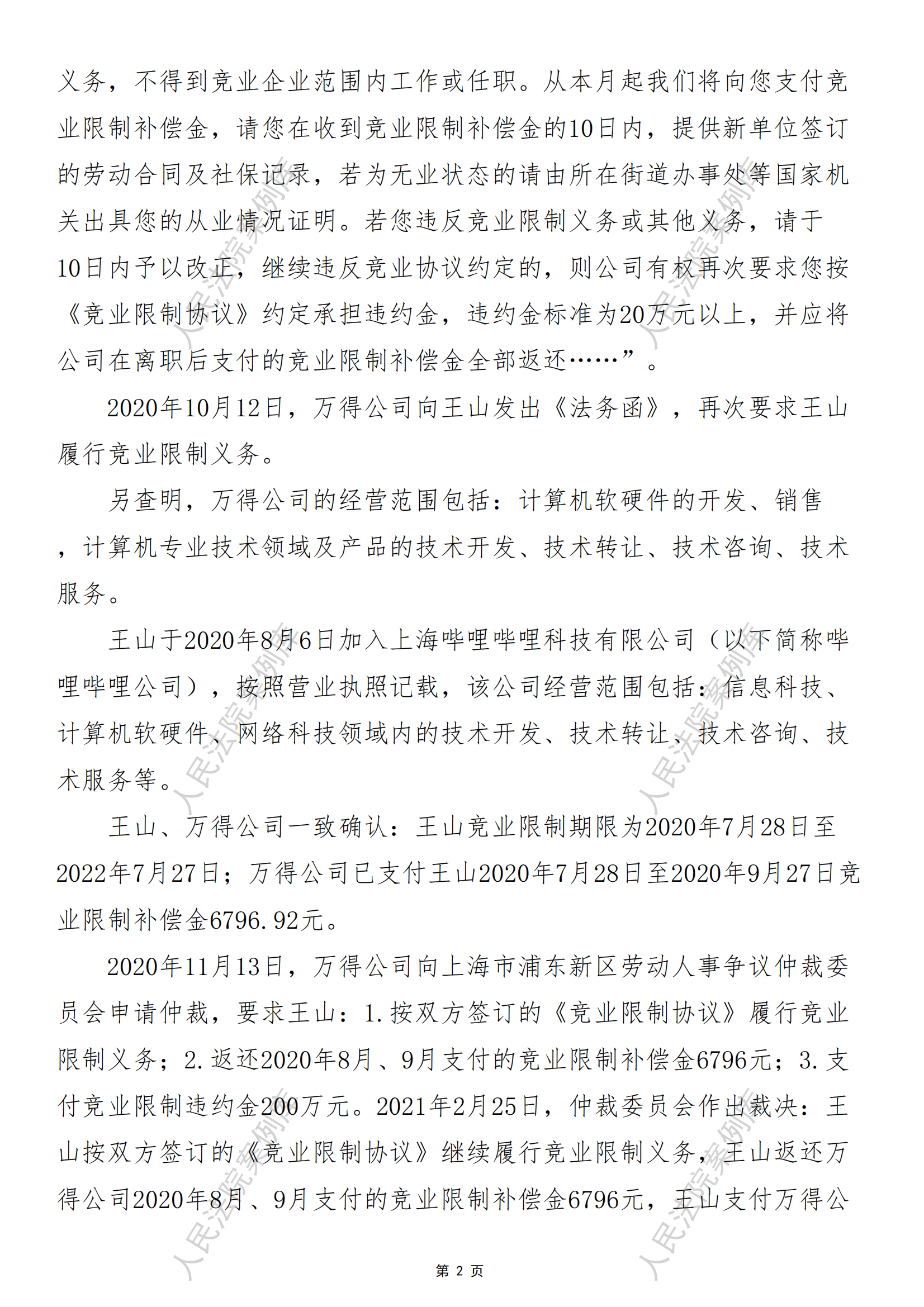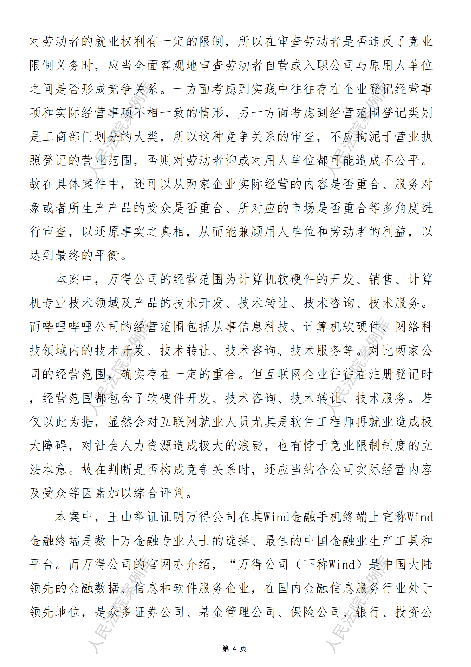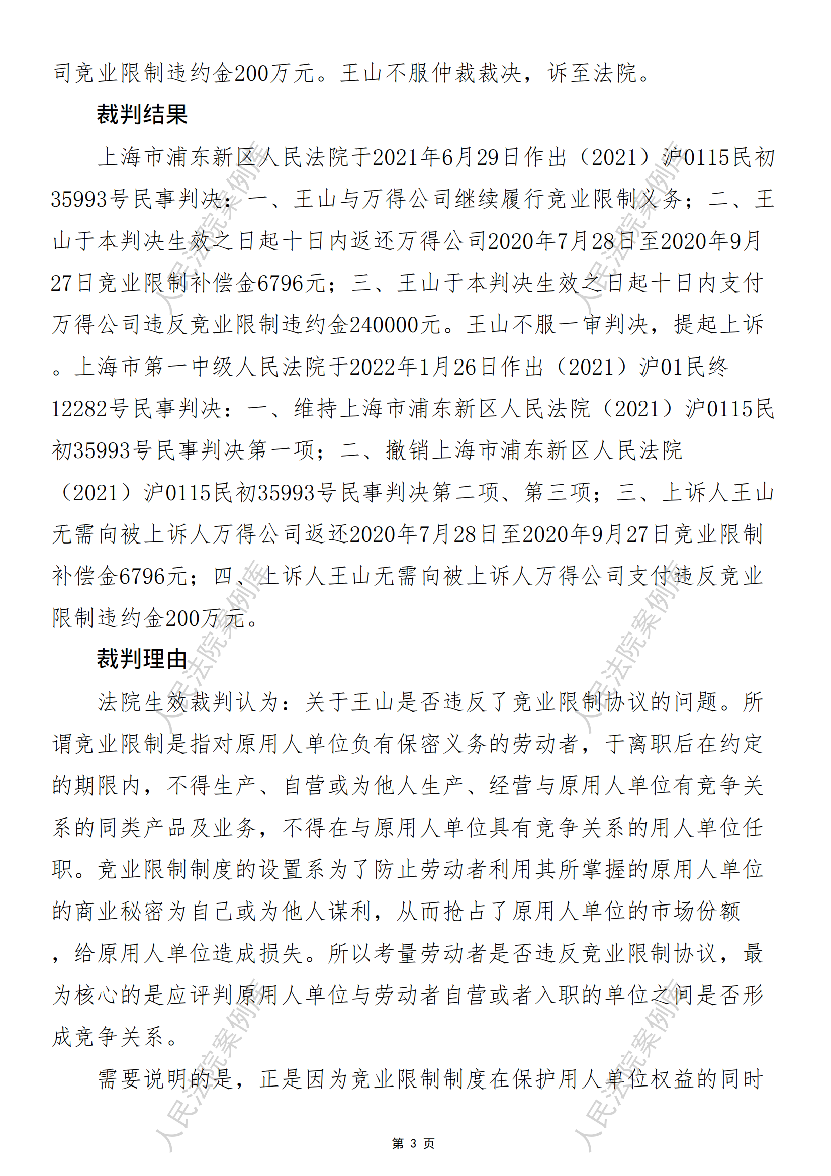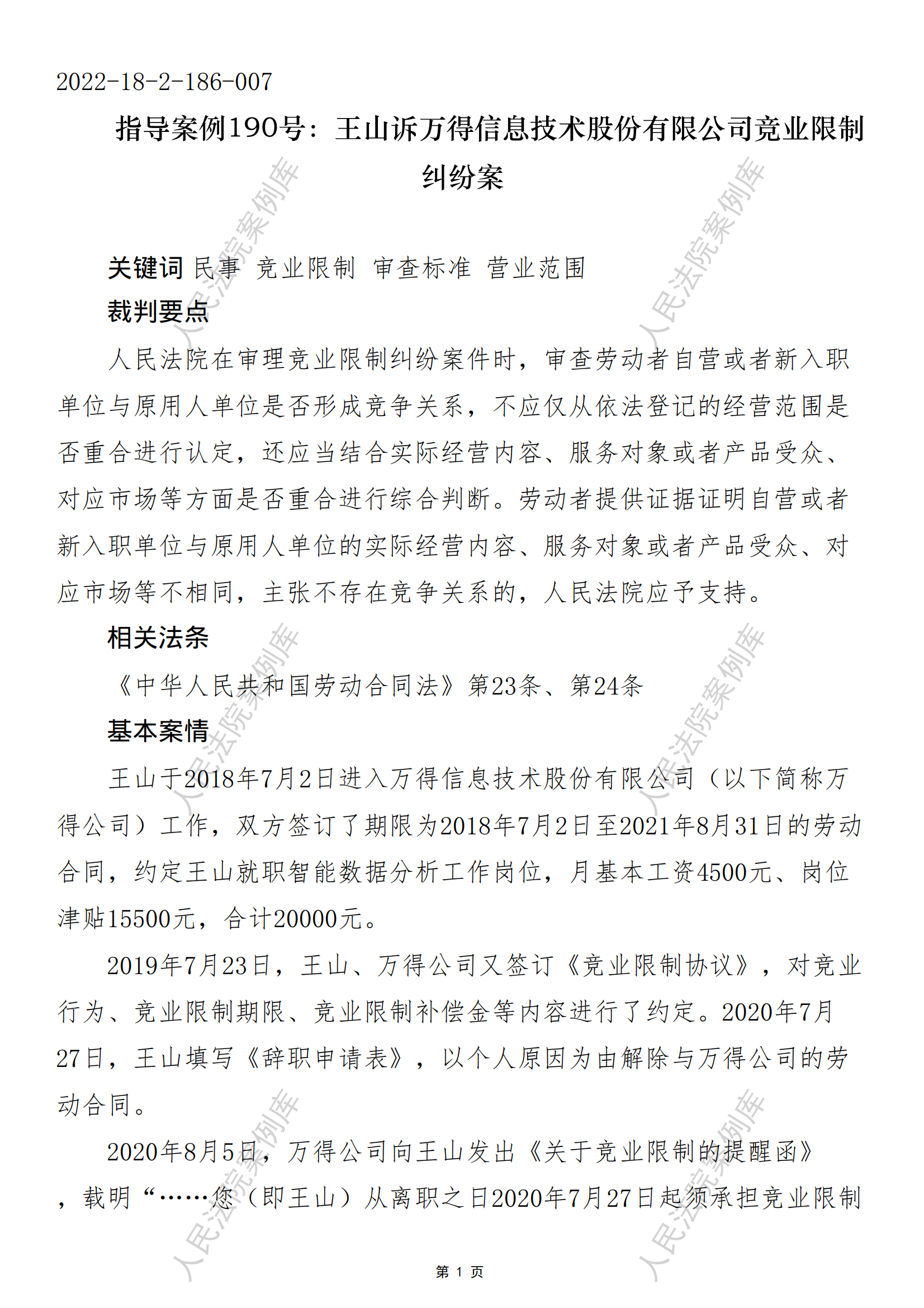 指导案例190号:王山诉万得信息技术股份有限公司竞业限制 纠纷案