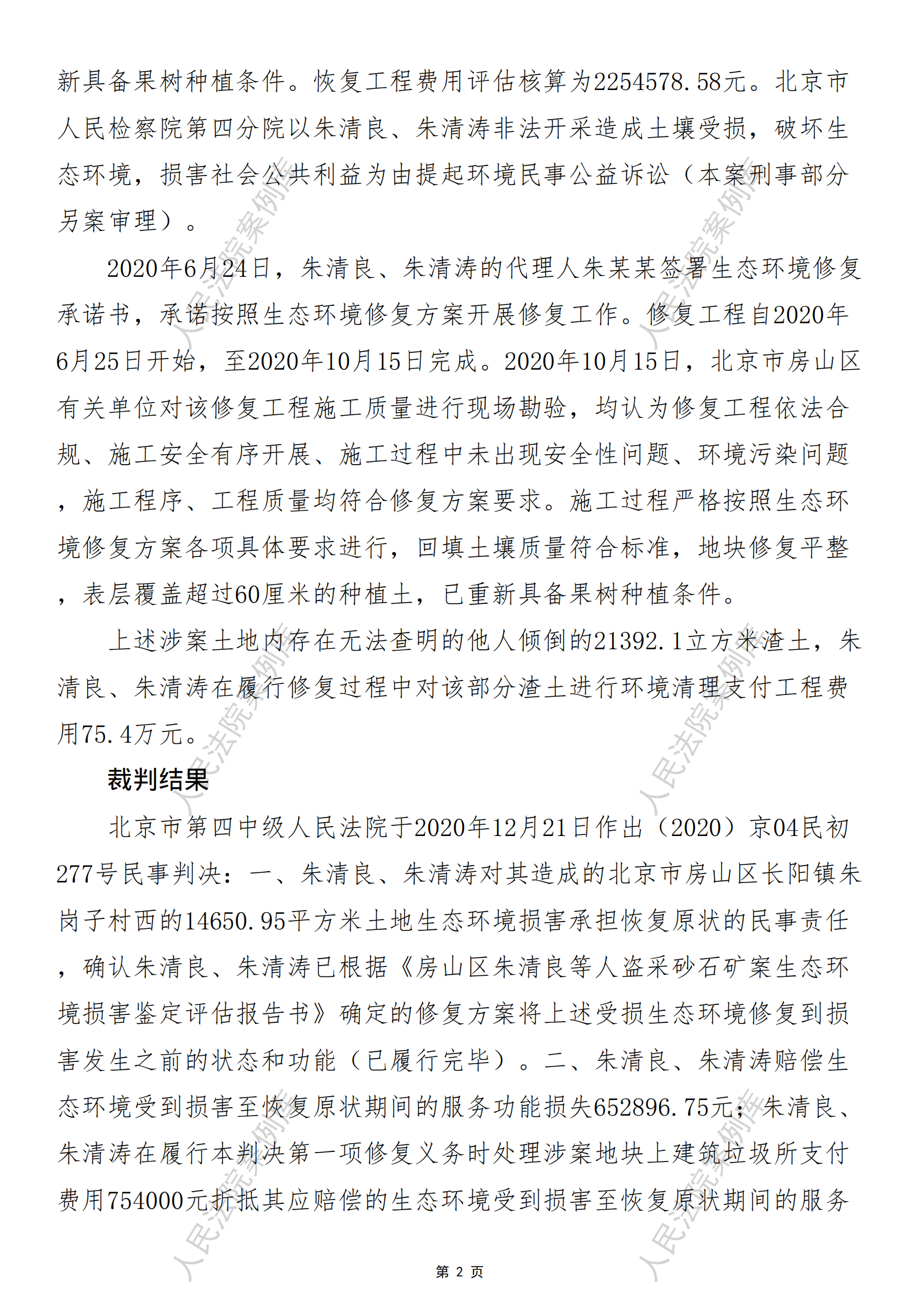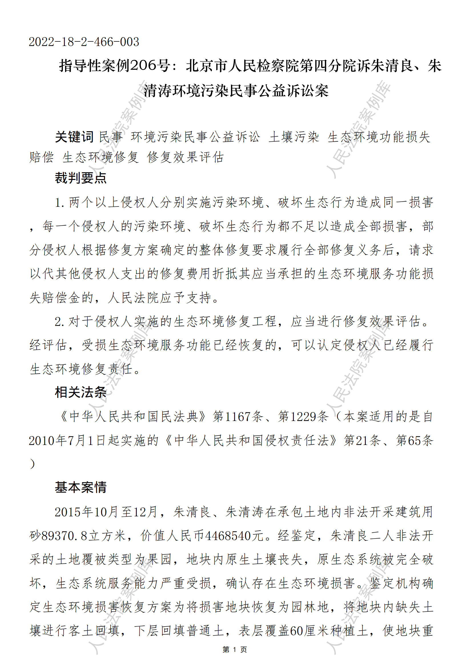 指导性案例206号:北京市人民检察院第四分院诉朱清良、朱 清涛环境污染民事公益诉讼案