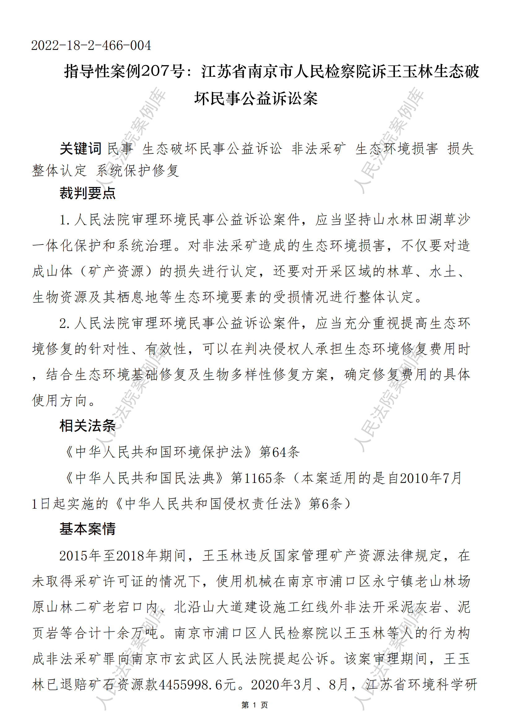 指导性案例207号:江苏省南京市人民检察院诉王玉林生态破
