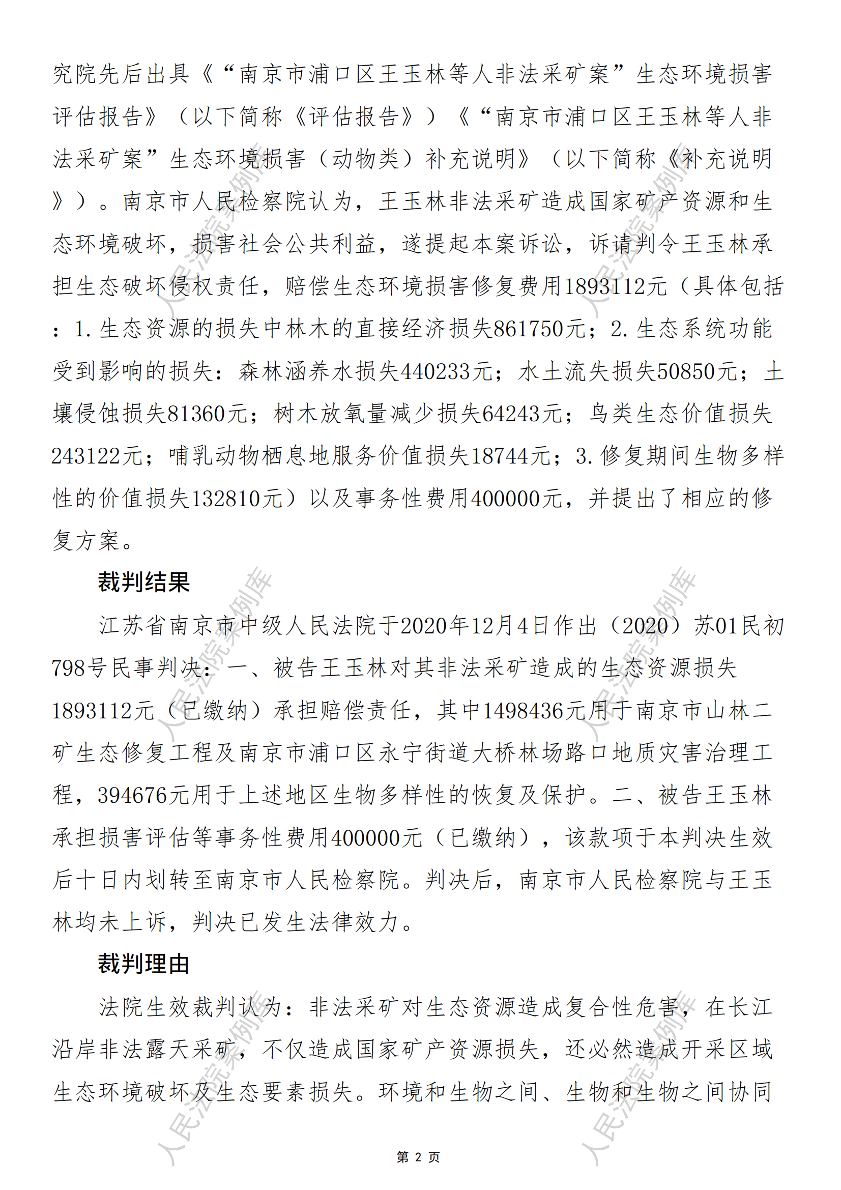 核心提示:关键词 民事 生态破坏民事公益诉讼 非法采矿 生态环境损害 损失整体认定 系统保护修复