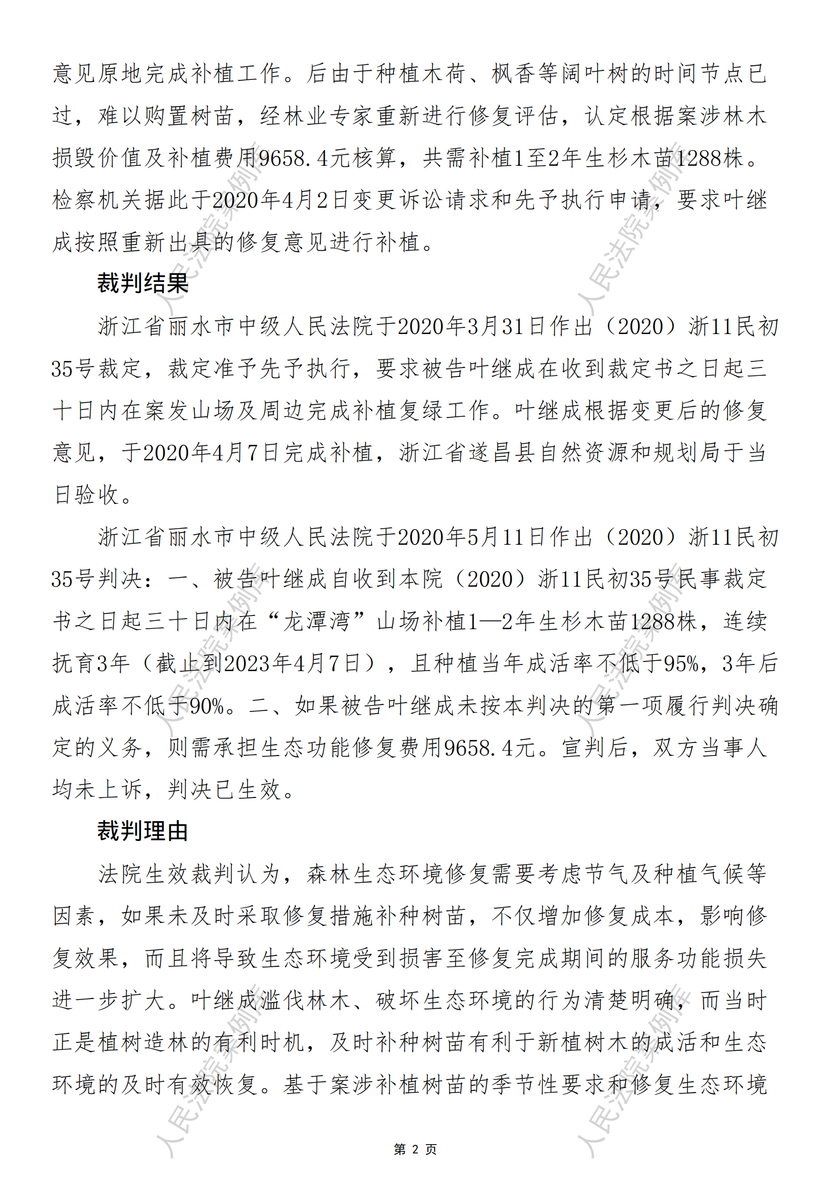 指导性案例209号:浙江省遂昌县人民检察院诉叶继成生态破坏民事公益诉讼案