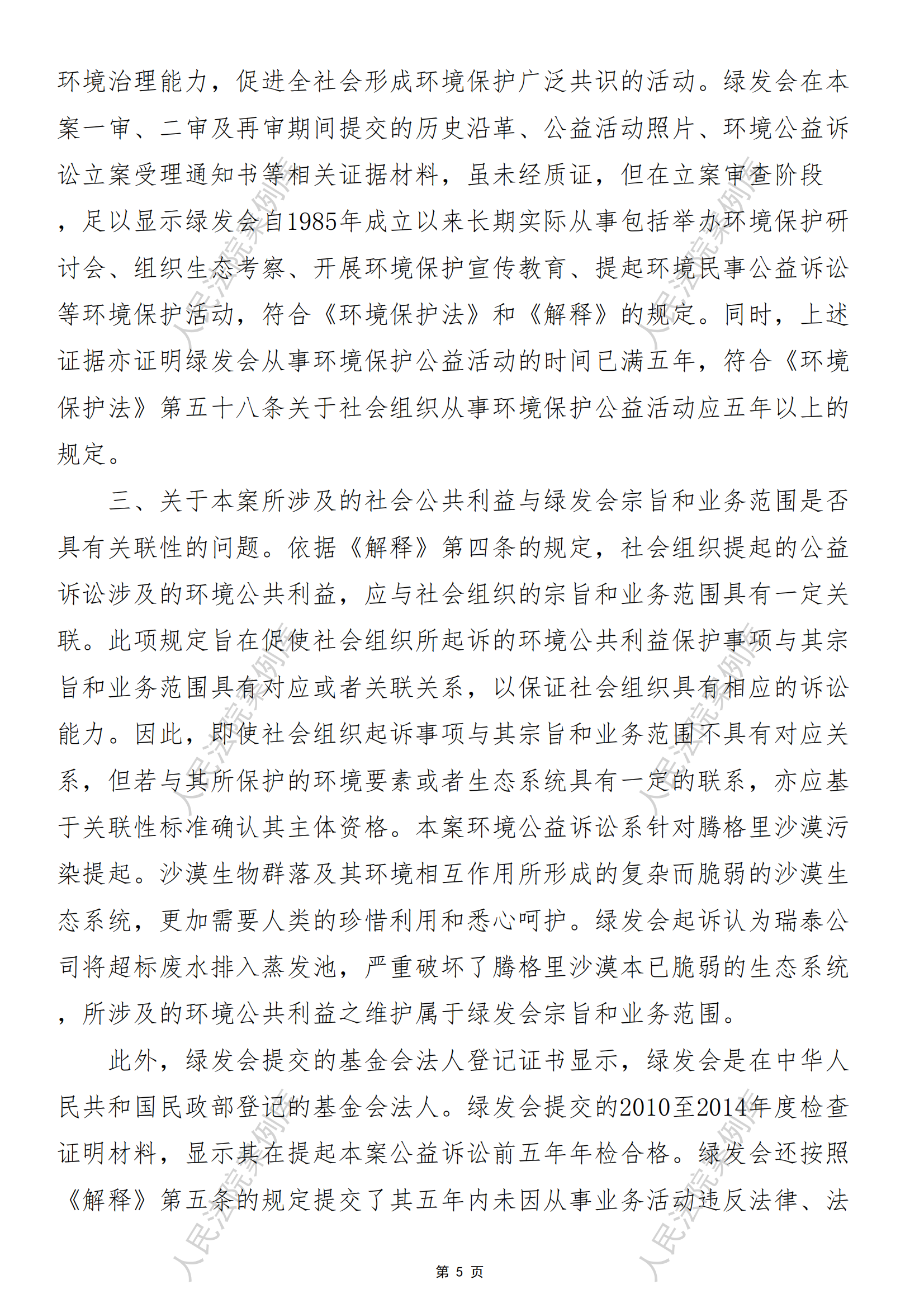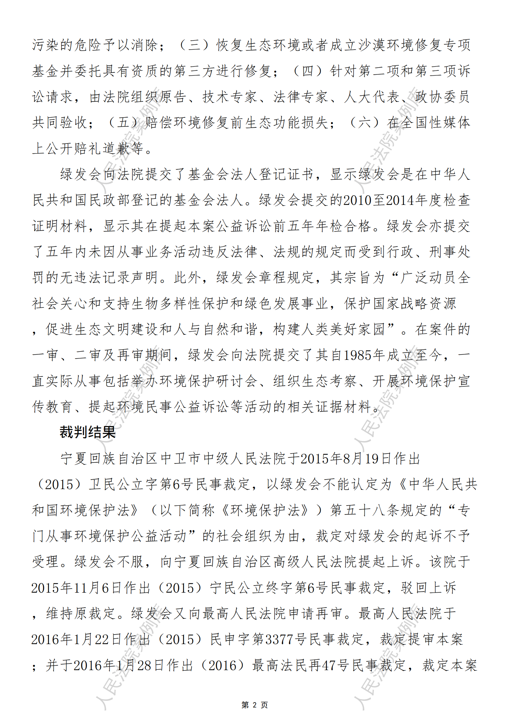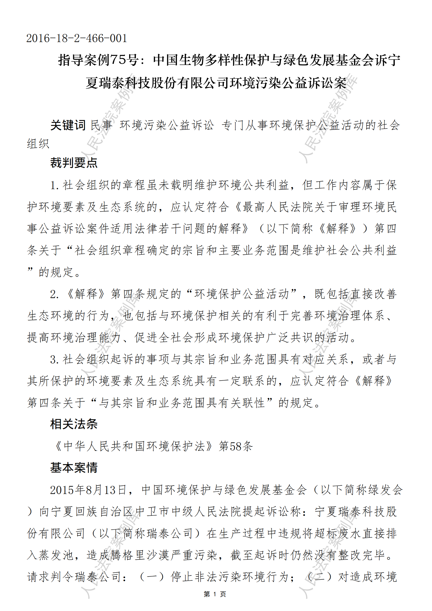 指导案例75号:中国生物多样性保护与绿色发展基金会诉宁夏瑞泰科技股份有限公司环境污染公益诉讼案