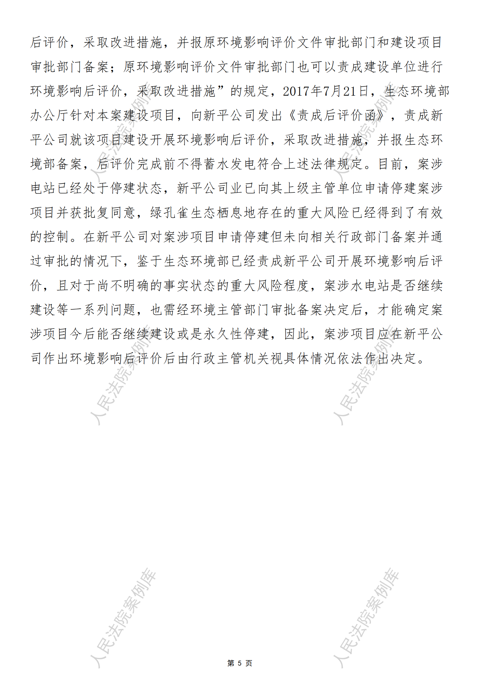 指导案例174号:中国生物多样性保护与绿色发展基金会诉雅 砻江流域水电开发有限公司生态环境保护民事公益诉讼案