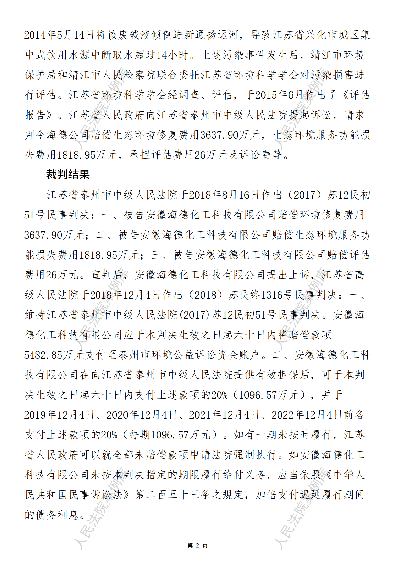 指导案例129号:江苏省人民政府诉安徽海德化工科技有限公