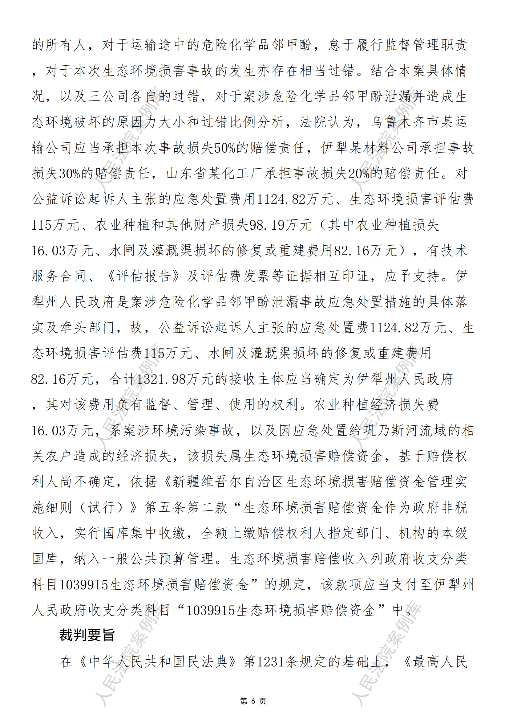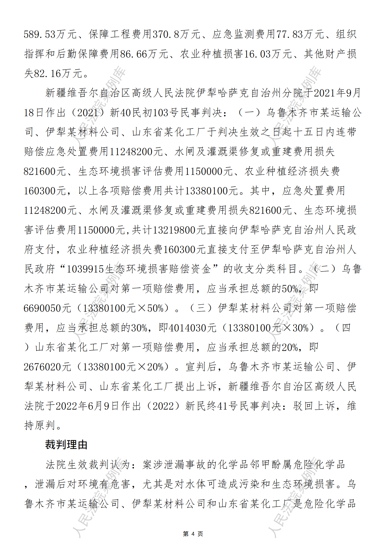 核心提示:——危险化学品的生产者、运输者及使用者对因不当泄漏造成的生态环境损害赔偿责任的份额划分