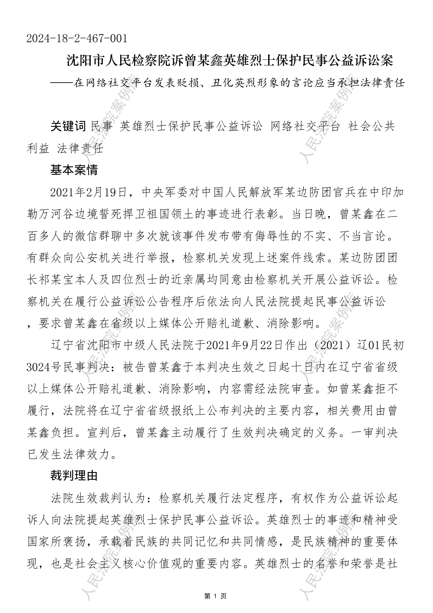 沈阳市人民检察院诉曾某鑫英雄烈士保护民事公益诉讼案