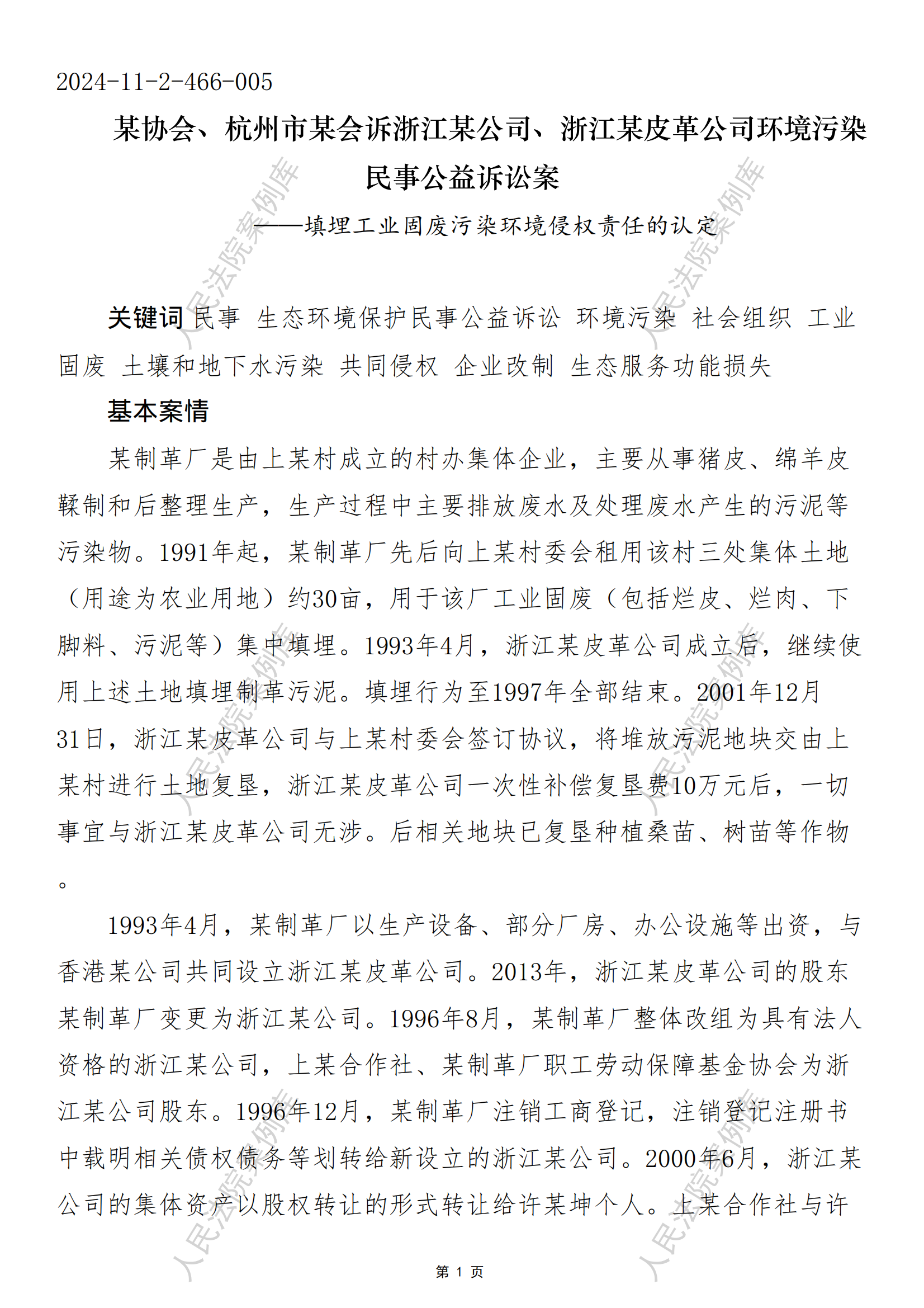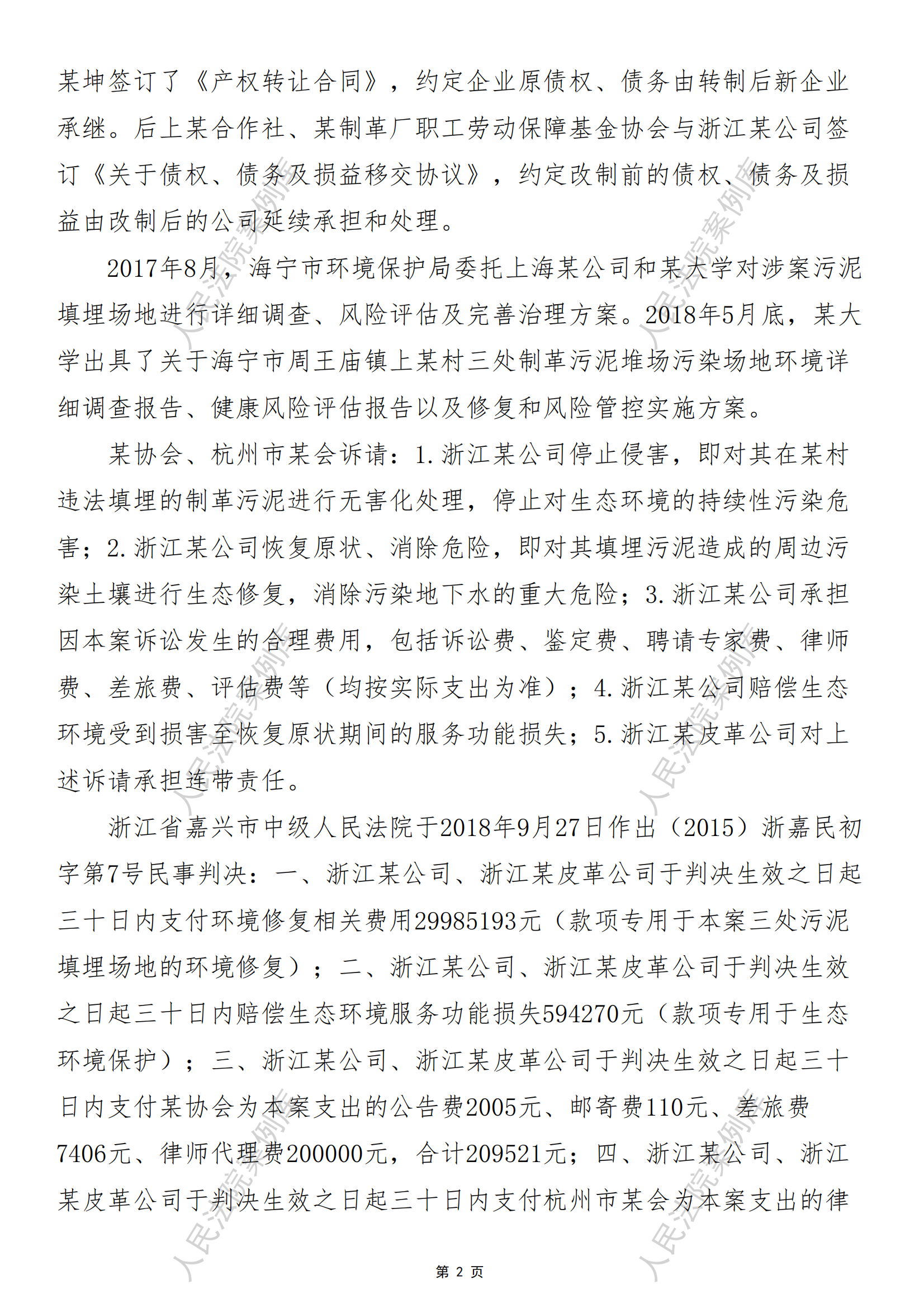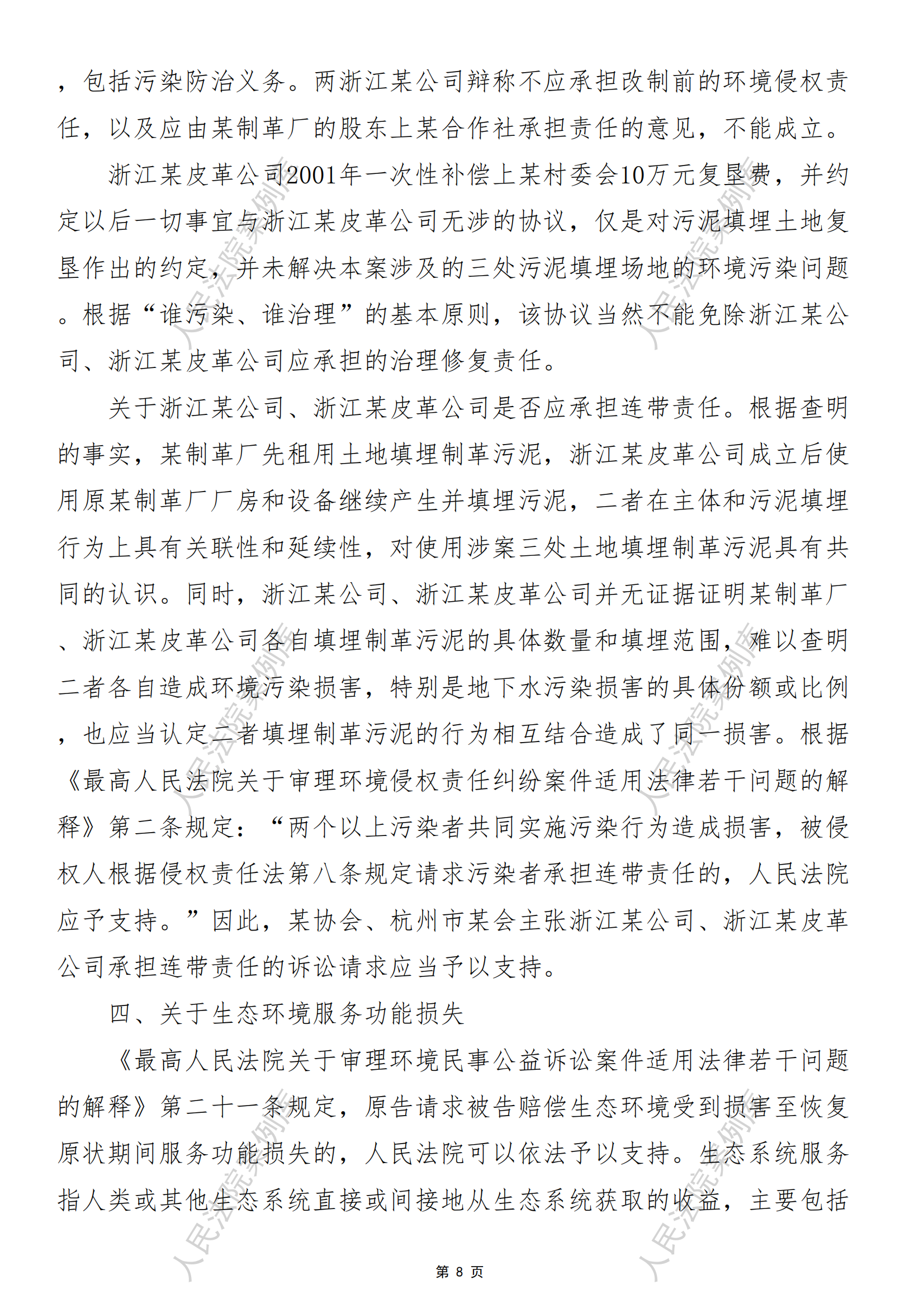 某协会、杭州市某会诉浙江某公司、浙江某皮革公司环境污染