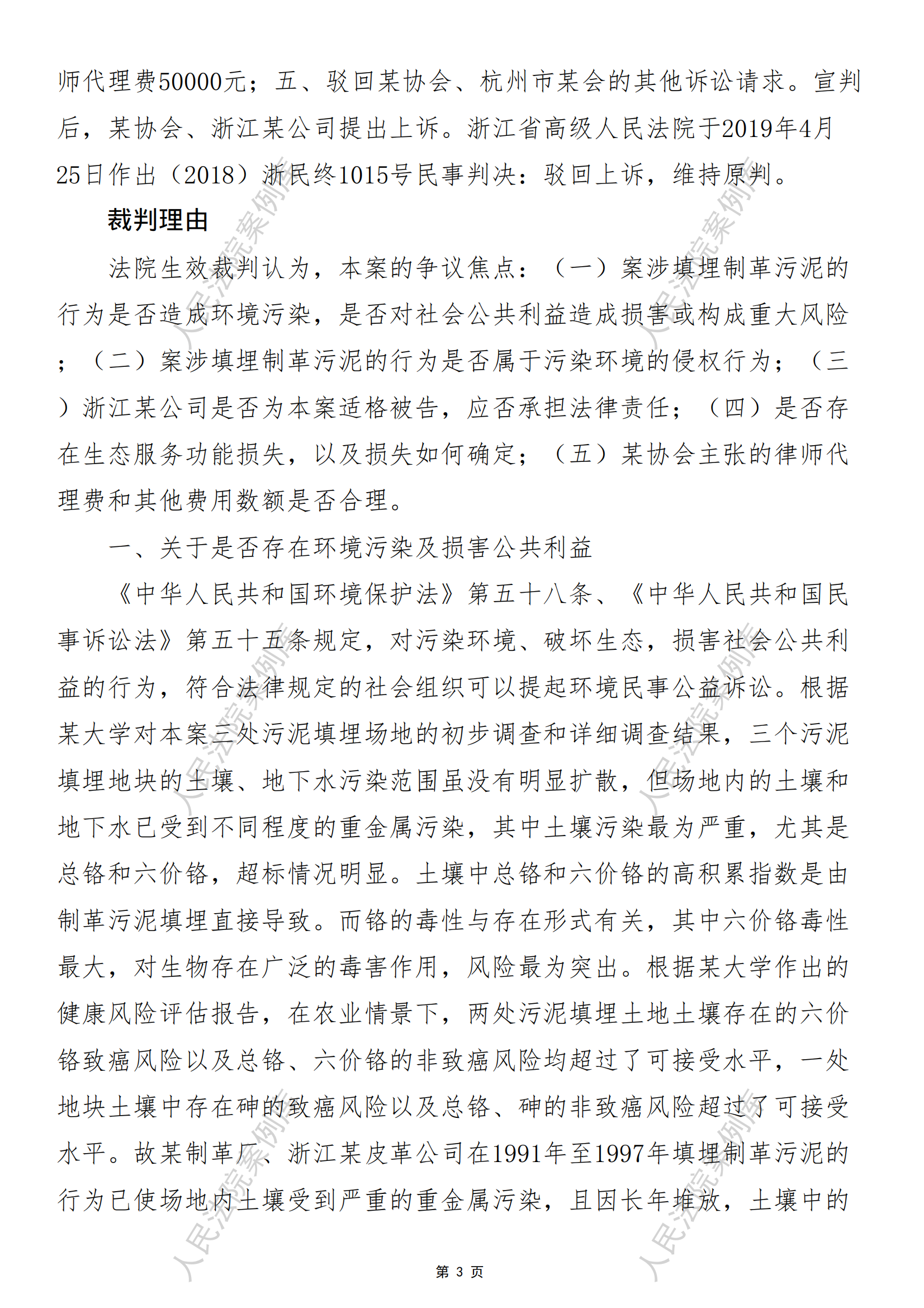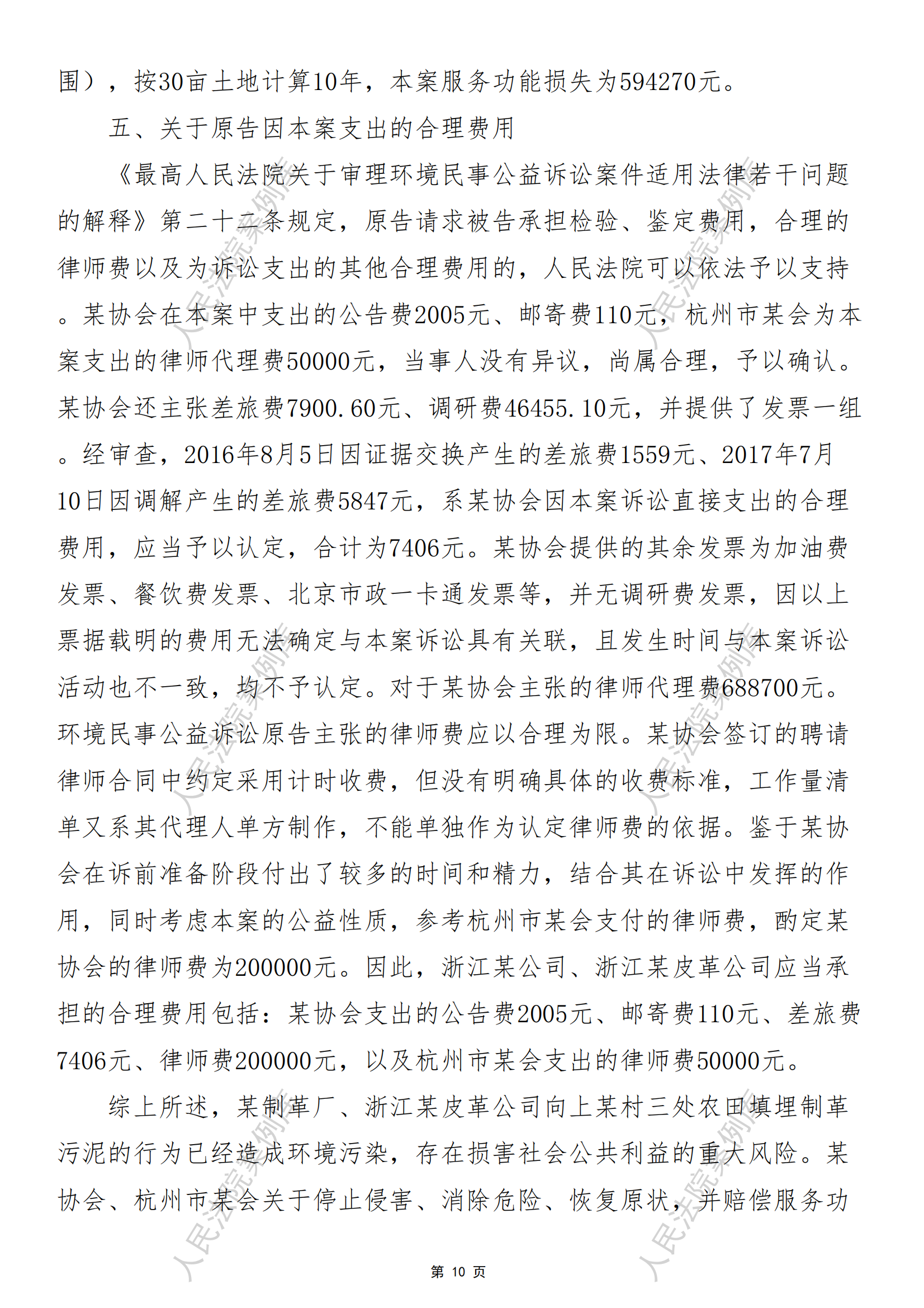 某协会、杭州市某会诉浙江某公司、浙江某皮革公司环境污染 民事公益诉讼案