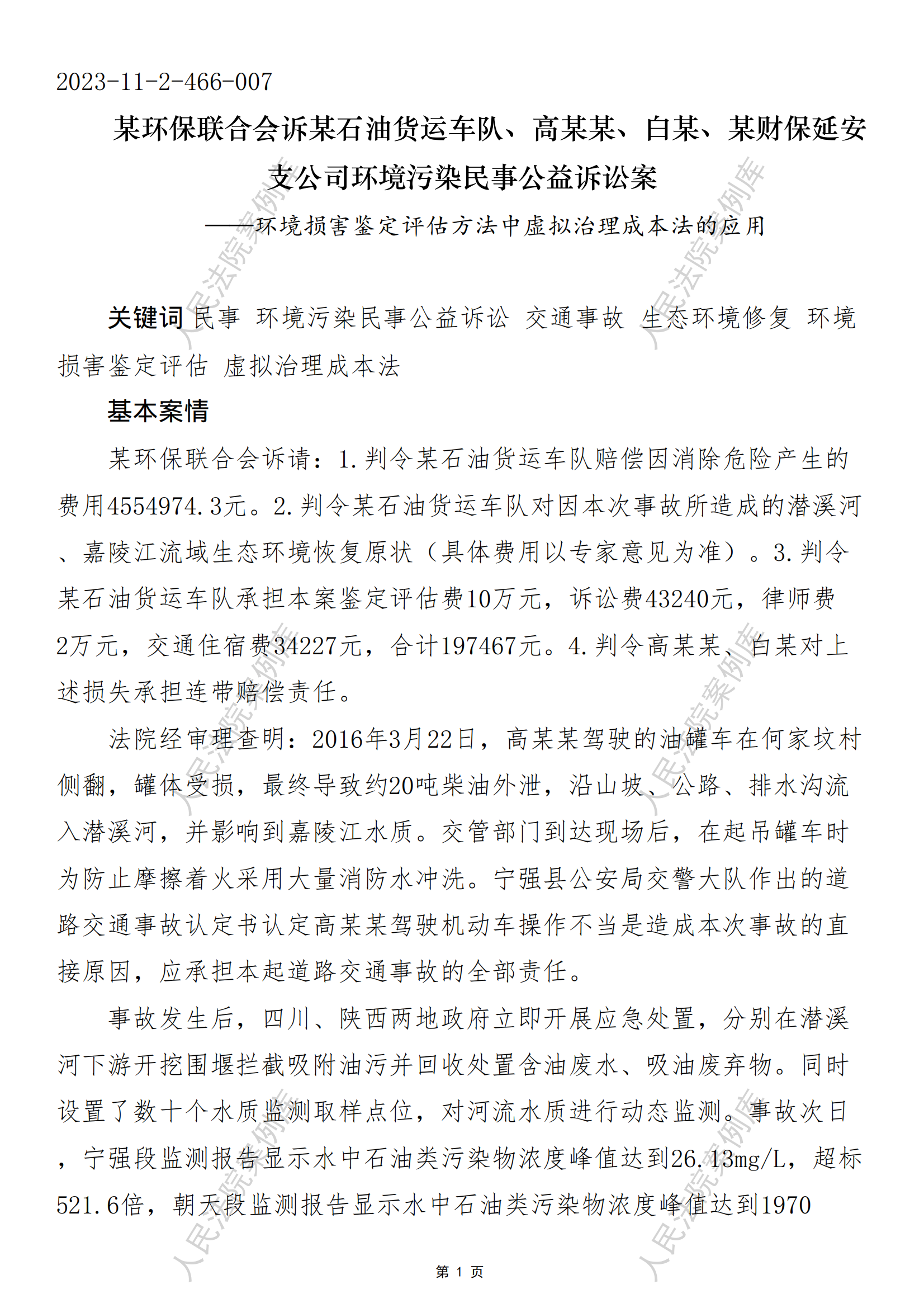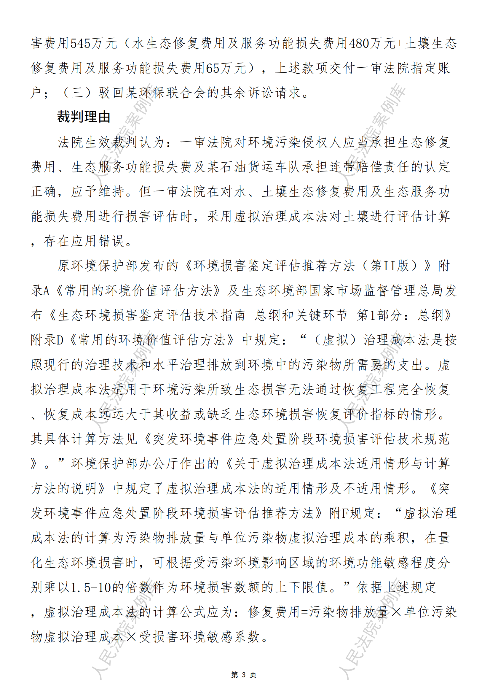 核心提示:——环境损害鉴定评估方法中虚拟治理成本法的应用