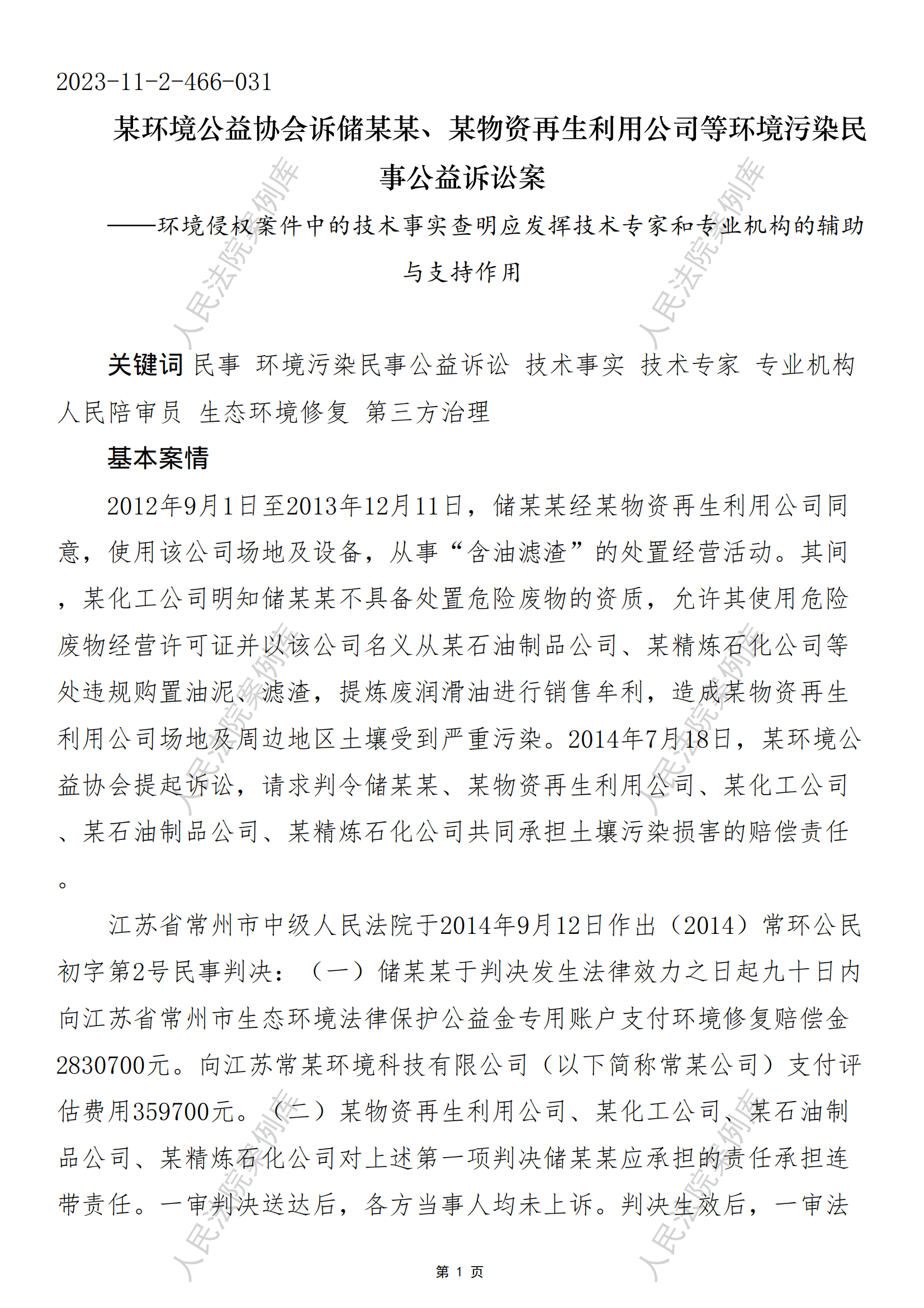 某环境公益协会诉储某某、某物资再生利用公司等环境污染民事公益诉讼案