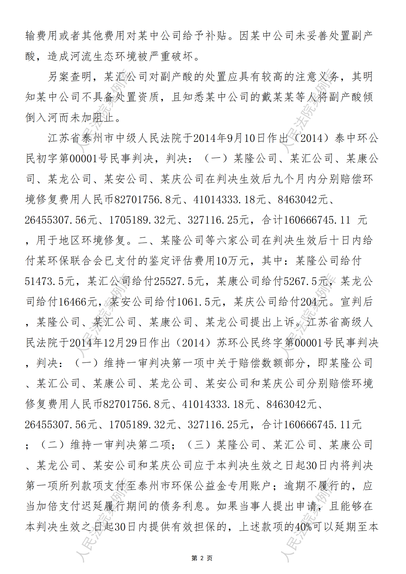 某环保联合会诉某汇公司等六公司环境污染民事公益诉讼案