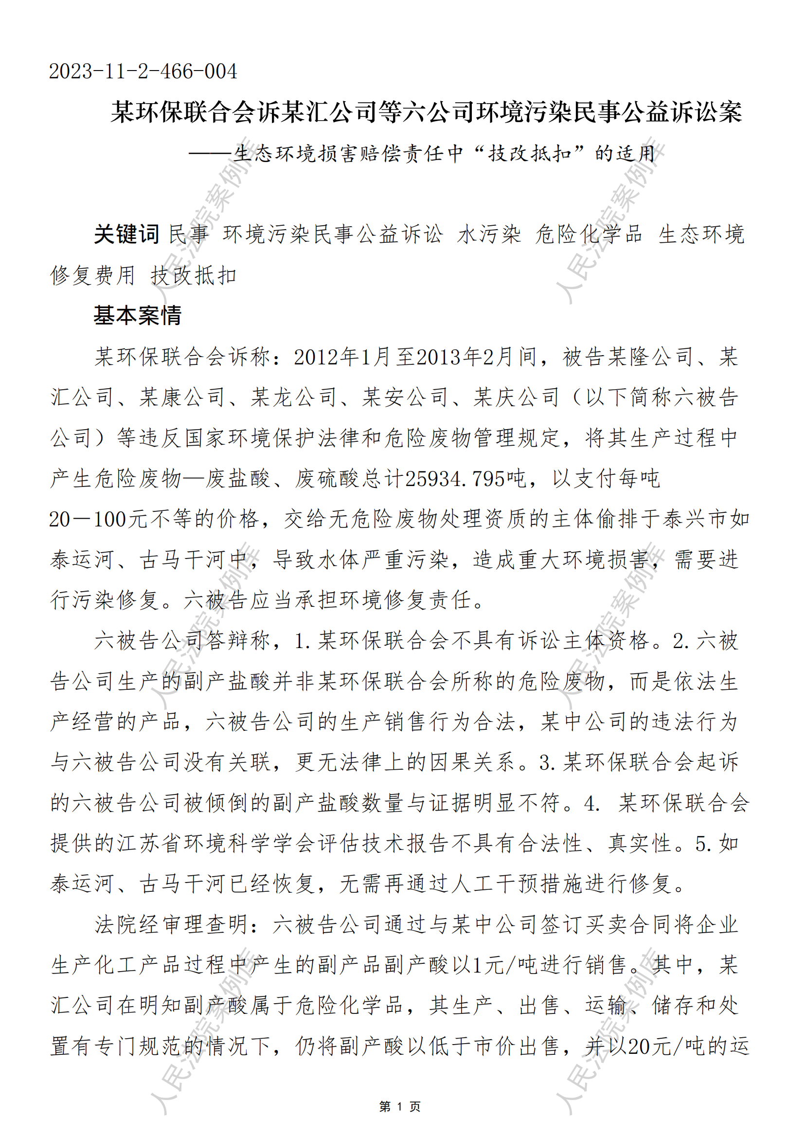 核心提示:——生态环境损害赔偿责任中“技改抵扣”的适用