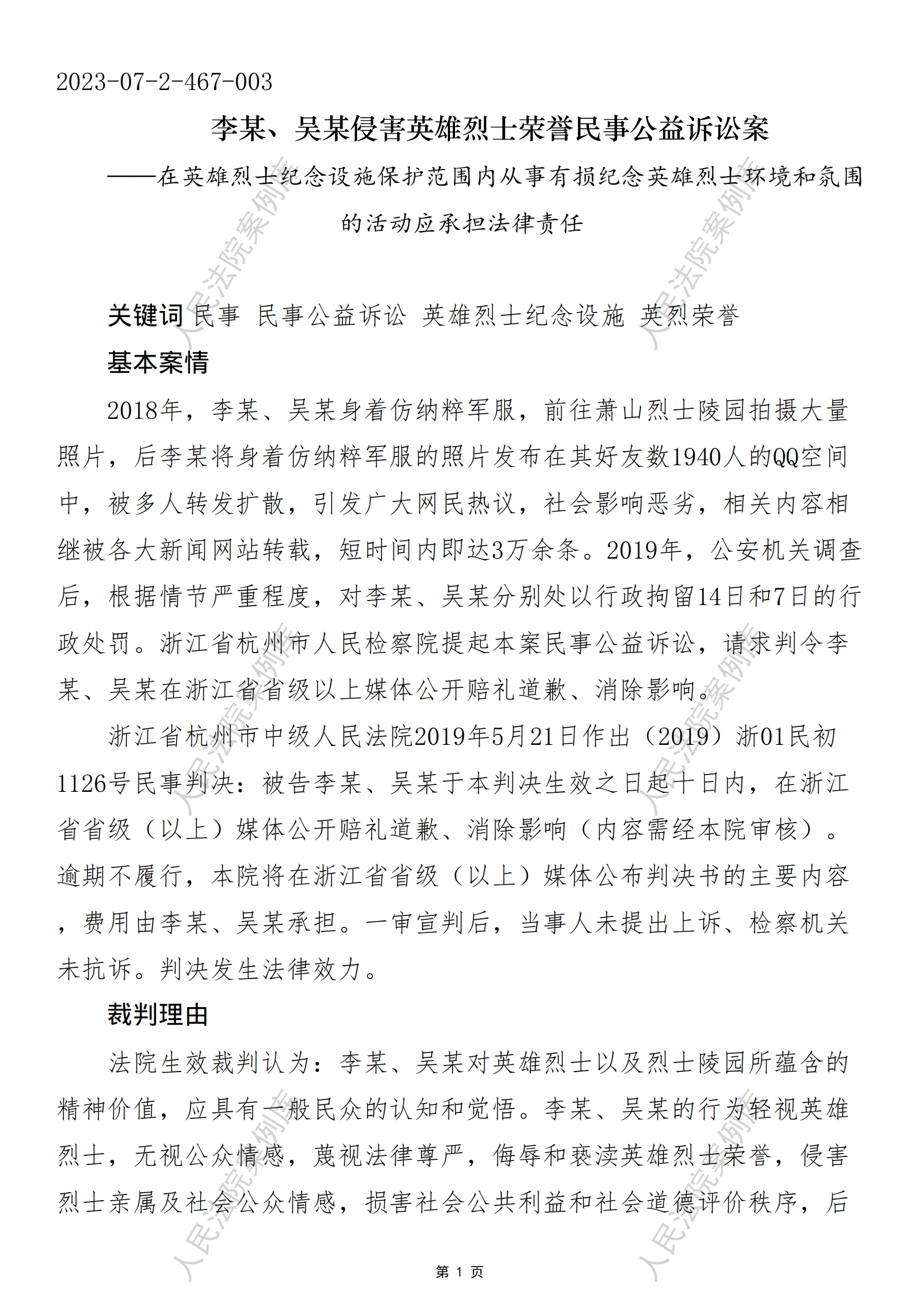 李某、吴某侵害英雄烈士荣誉民事公益诉讼案