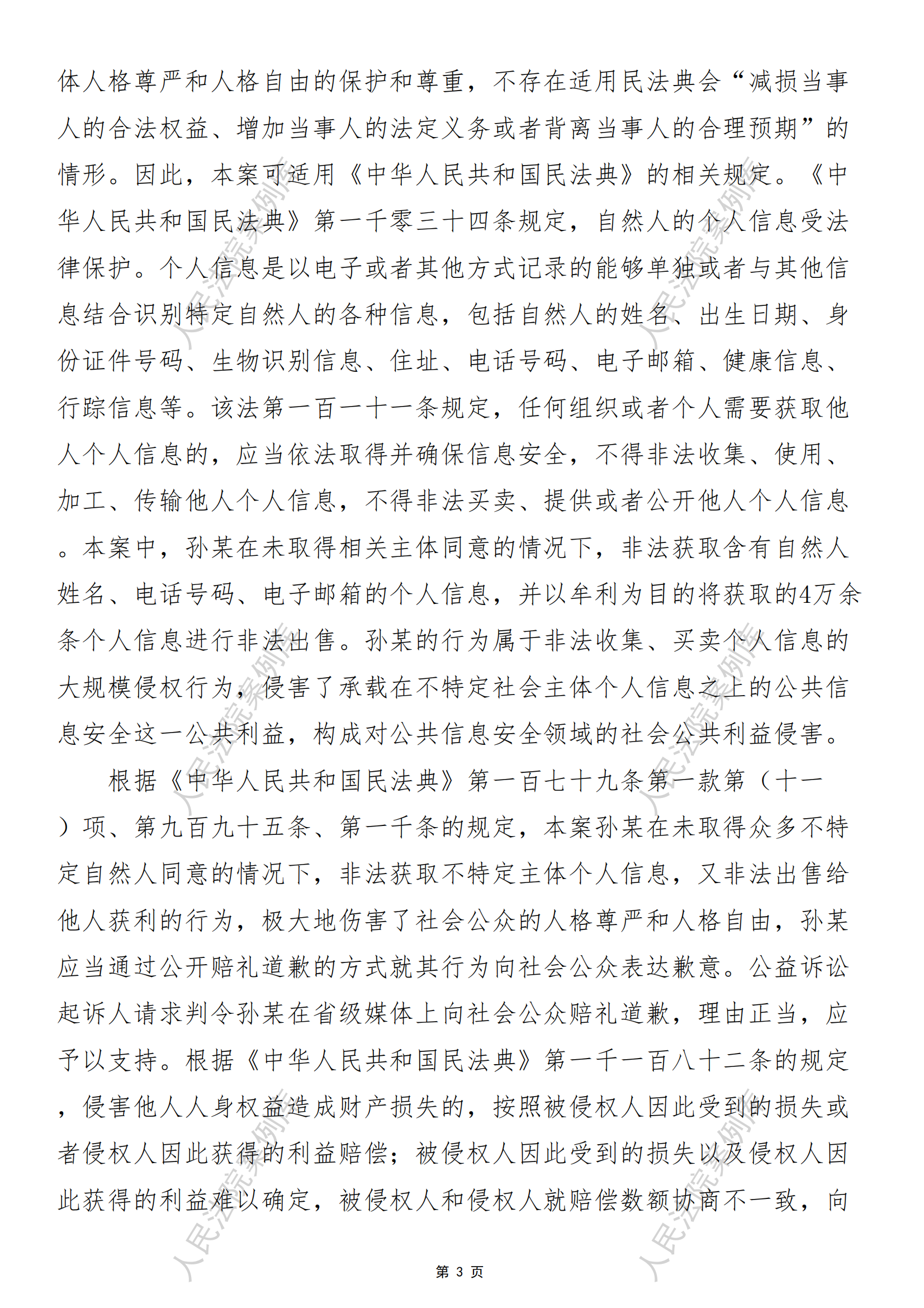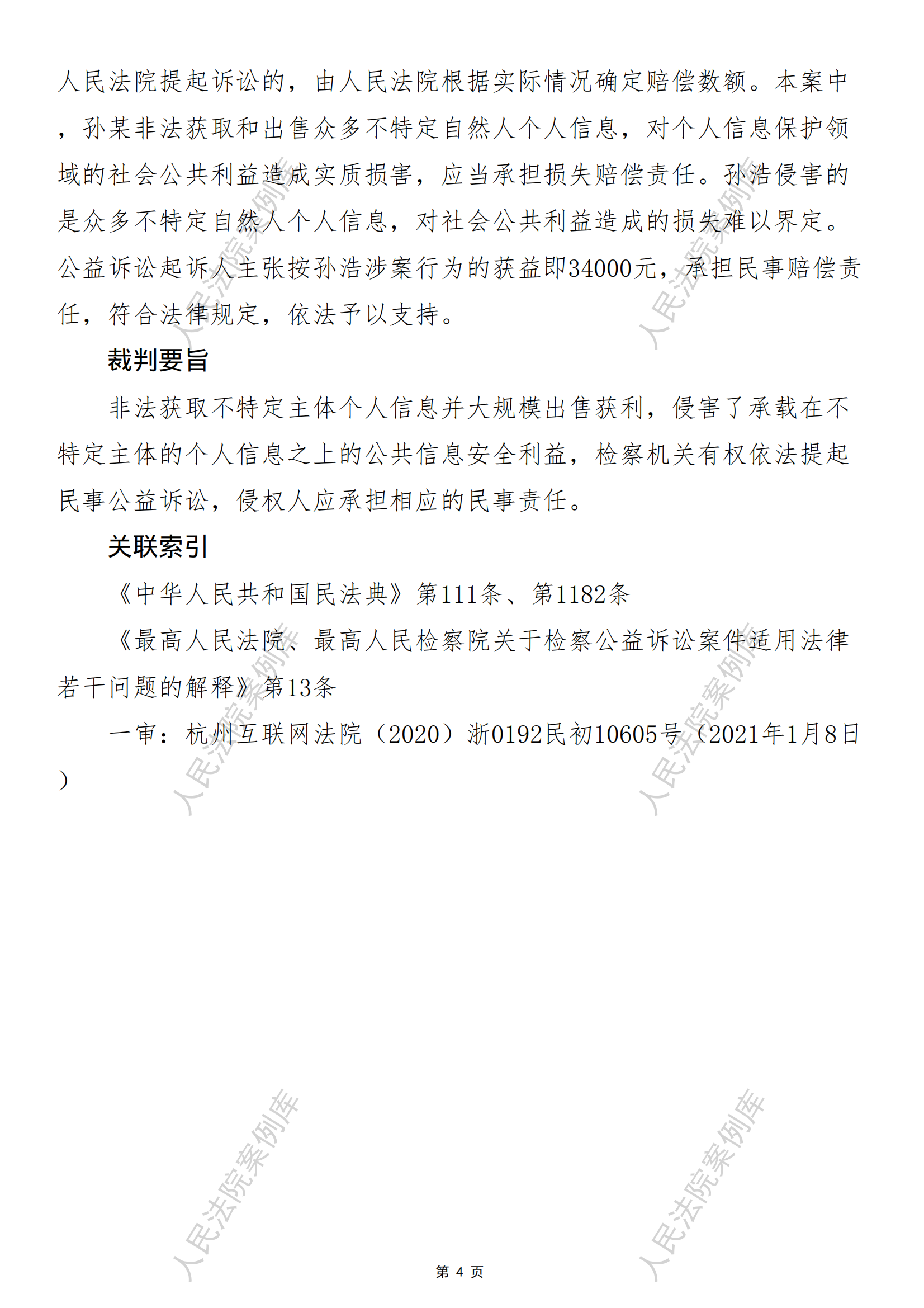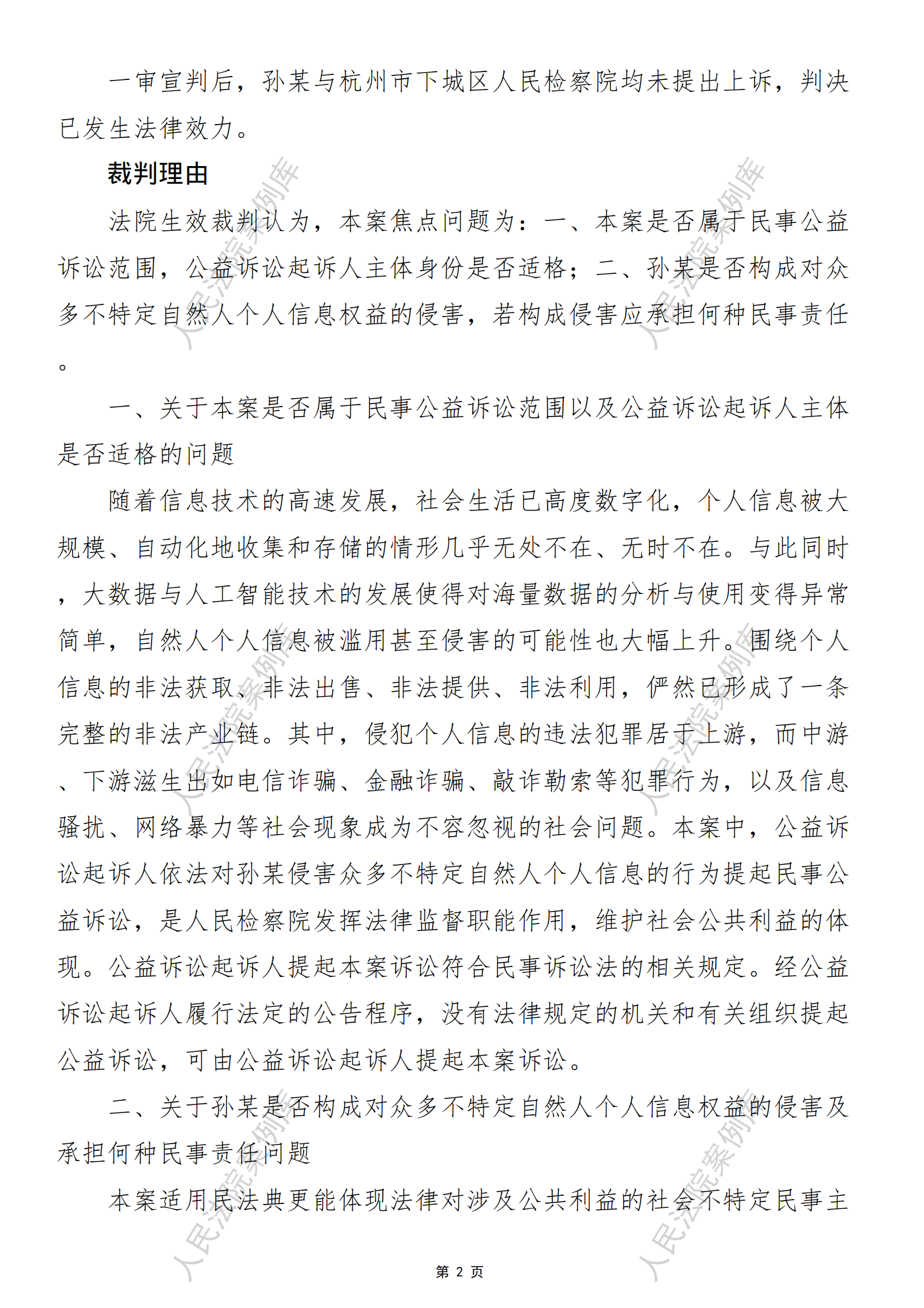 杭州市下城区人民检察院诉孙某个人信息保护民事公益诉讼案